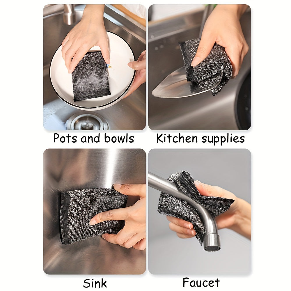 6 ta po'lat qopqoq gubkasi to'plami - ko'p maqsadli tozalash uchun zarar bermaydigan idish yuvish gubkalari. Oshxona tozalash uchun mukammal - oson idish yuvish uchun simli tozalagichni o'z ichiga oladi. Zarur tozalash asboblari va materiallari.