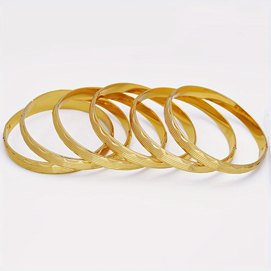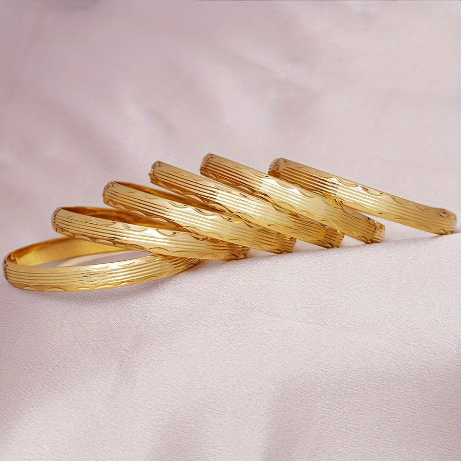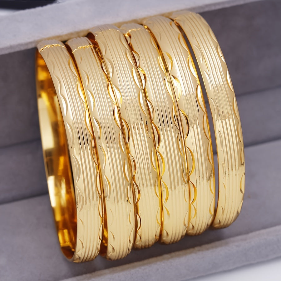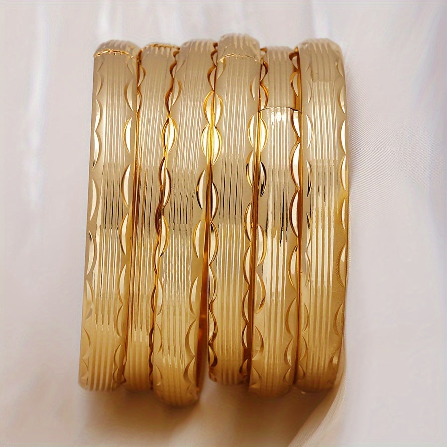 6 ta chiziqli bilaguzuklar to'plami ayollar uchun - zamonaviy lotin bohemiyalik Dubay O'rta Sharq klassik elegant ochiq qovurg'a bilaguzuklar - misdan tayyorlangan, kundalik va bayram kiyimlari uchun mos, barcha mavsumlar uchun mukammal aksessuar