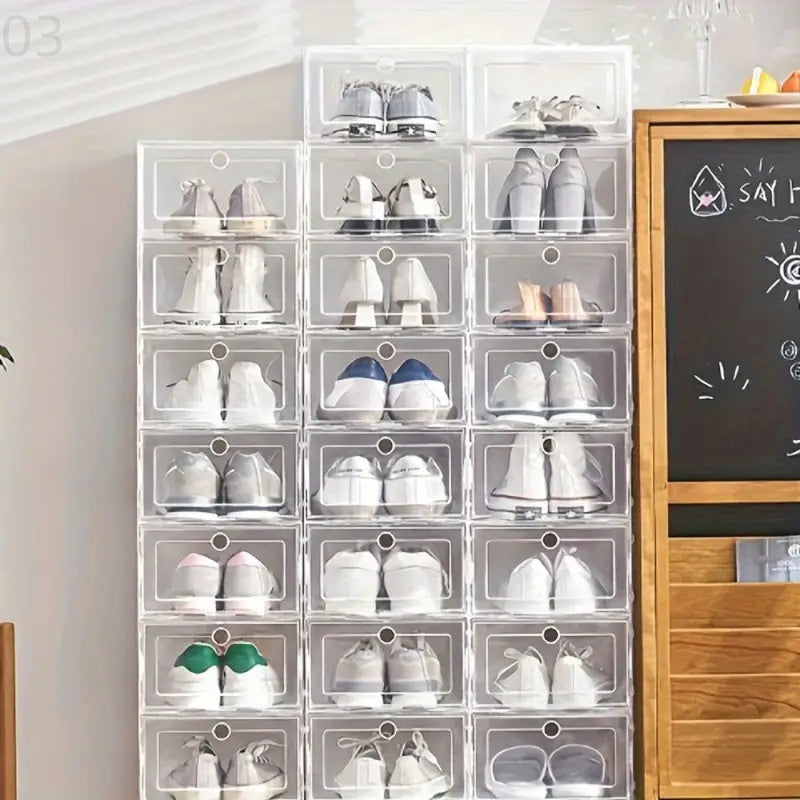 6 ta Shaffof Plastik Poyabzal Qutisi - Nam va Changga Qarshi, Oson Yig'iladigan, Shkaflar yoki Shkaflarda Poyabzallarni Ko'rsatish Uchun Mukammal, Poyabzal Saqlash Yechimi