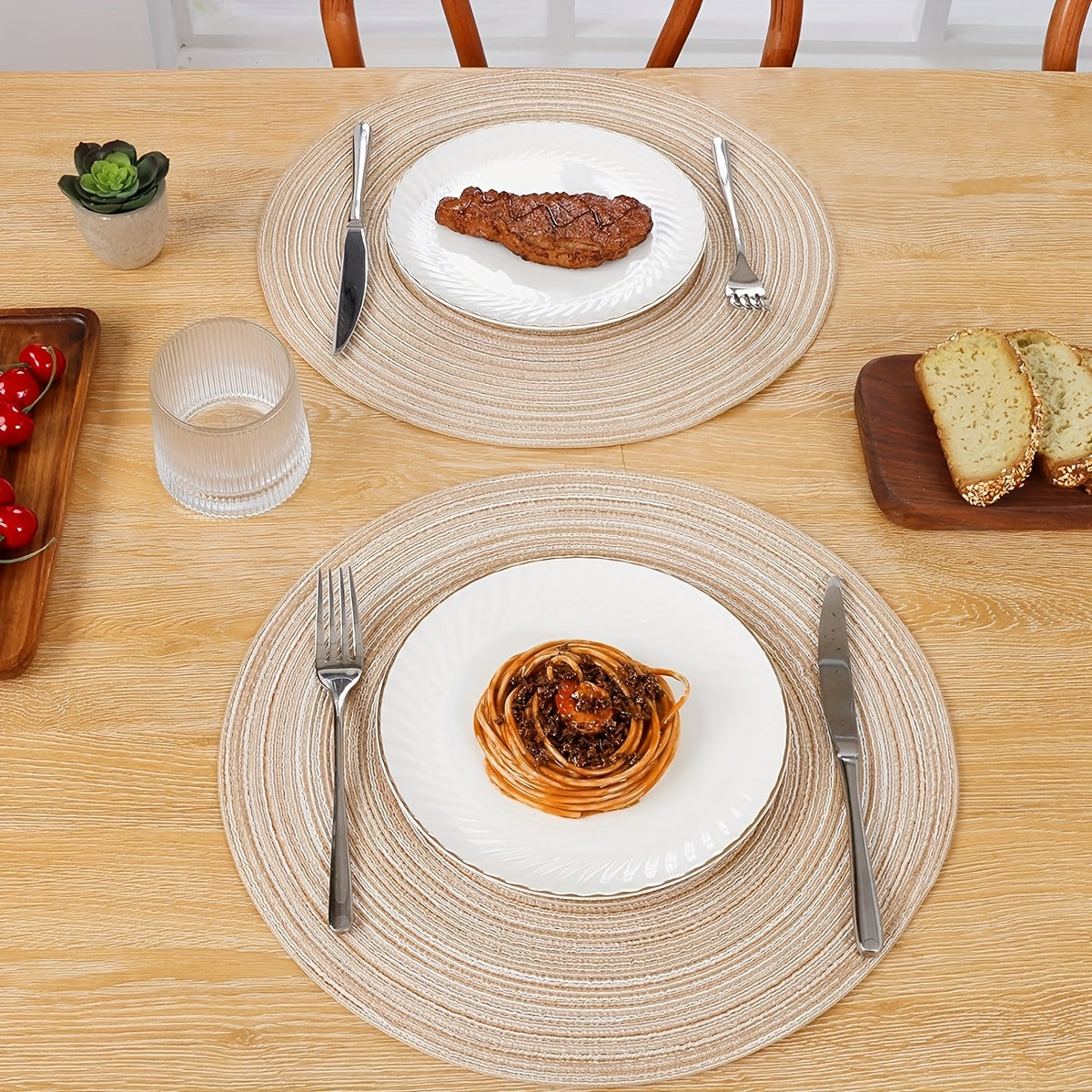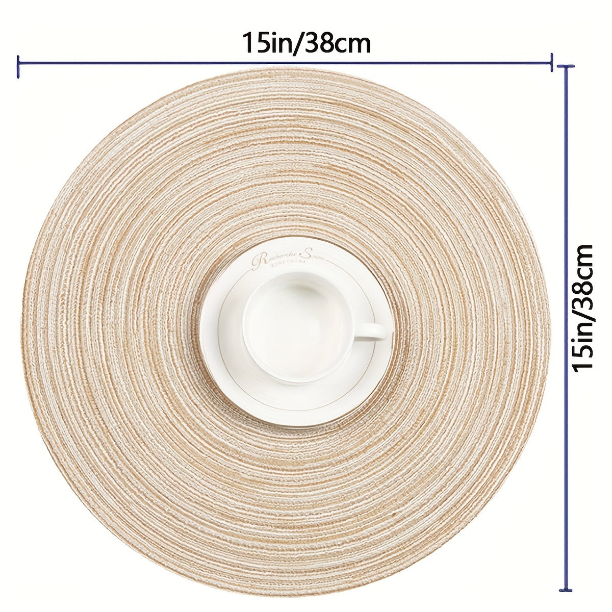 Oshxona stoli uchun 6 ta yuvilishi mumkin bo'lgan dumaloq to'qilgan stol osti, diametri 38.1 sm.