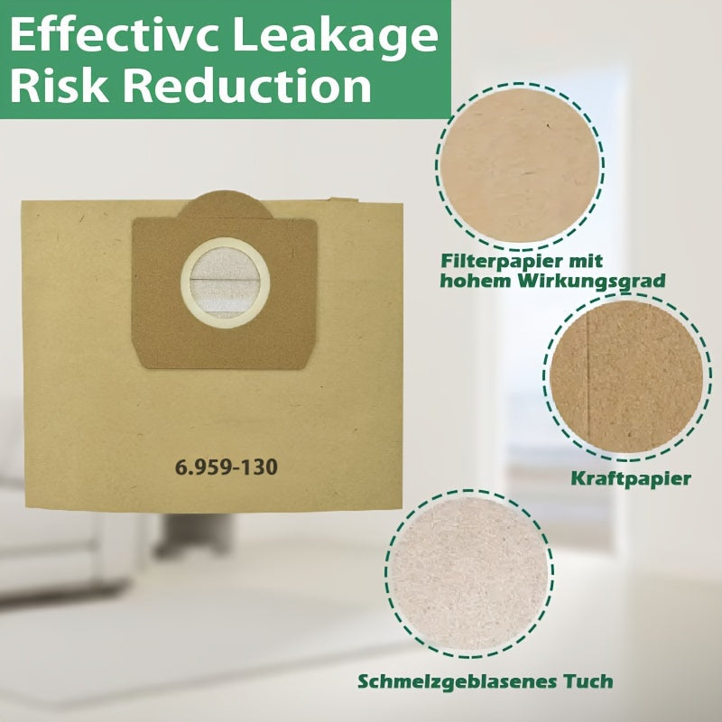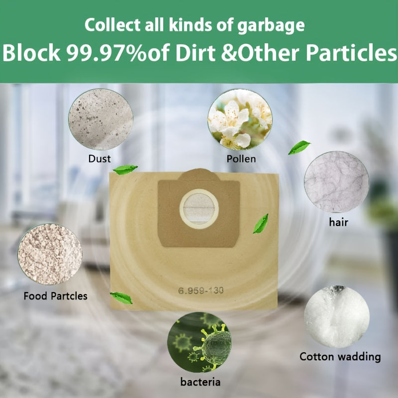 7 ta ikki maqsadli nam va quruq vakuum sumkalari Karcher modellari 6.959-160, MV1, NT18, WD3200, SE4001, A2200 bilan mos keladi - yuqori samarali chang tozalash va mopping uchun ikki qatlamli filtratsiya tizimi mavjud.