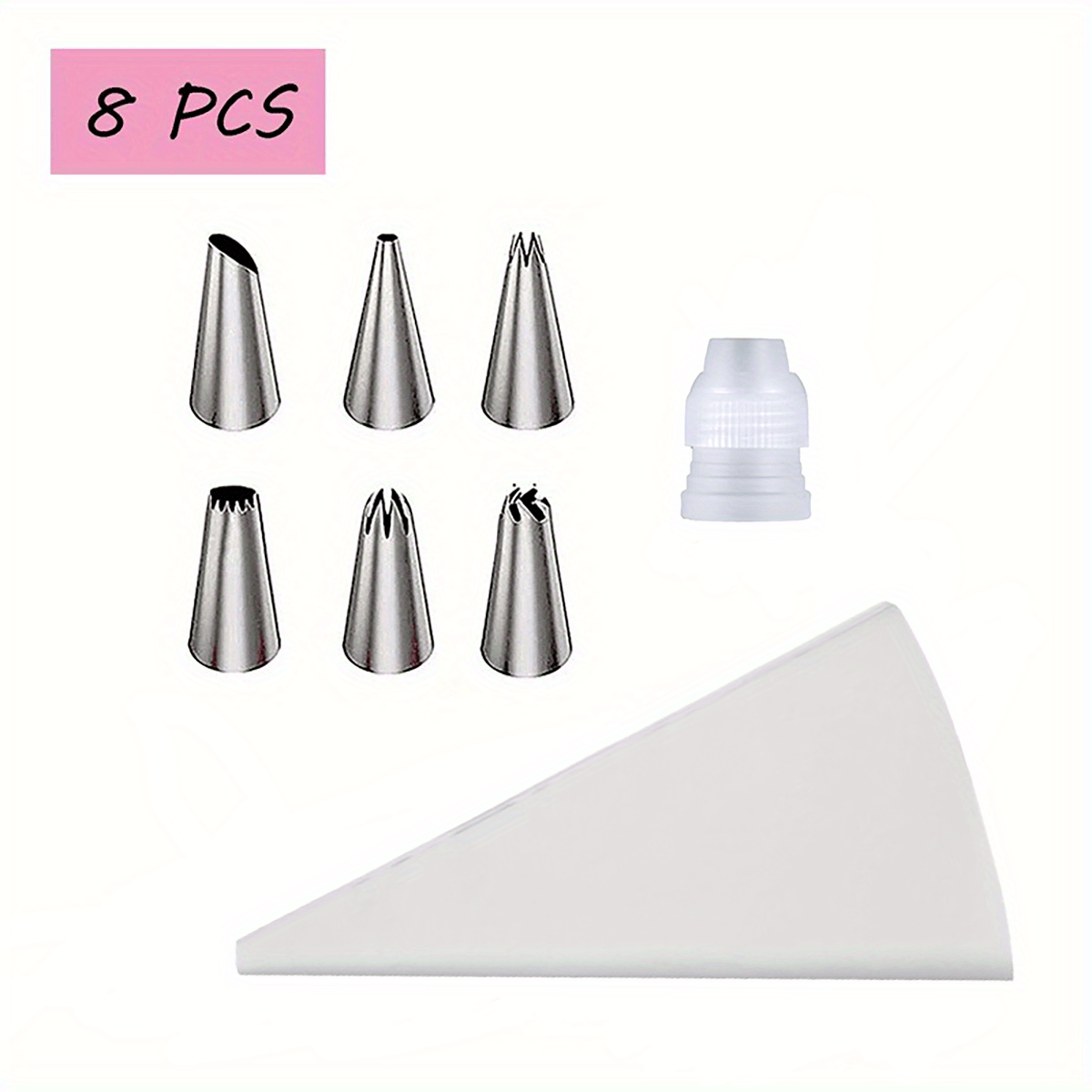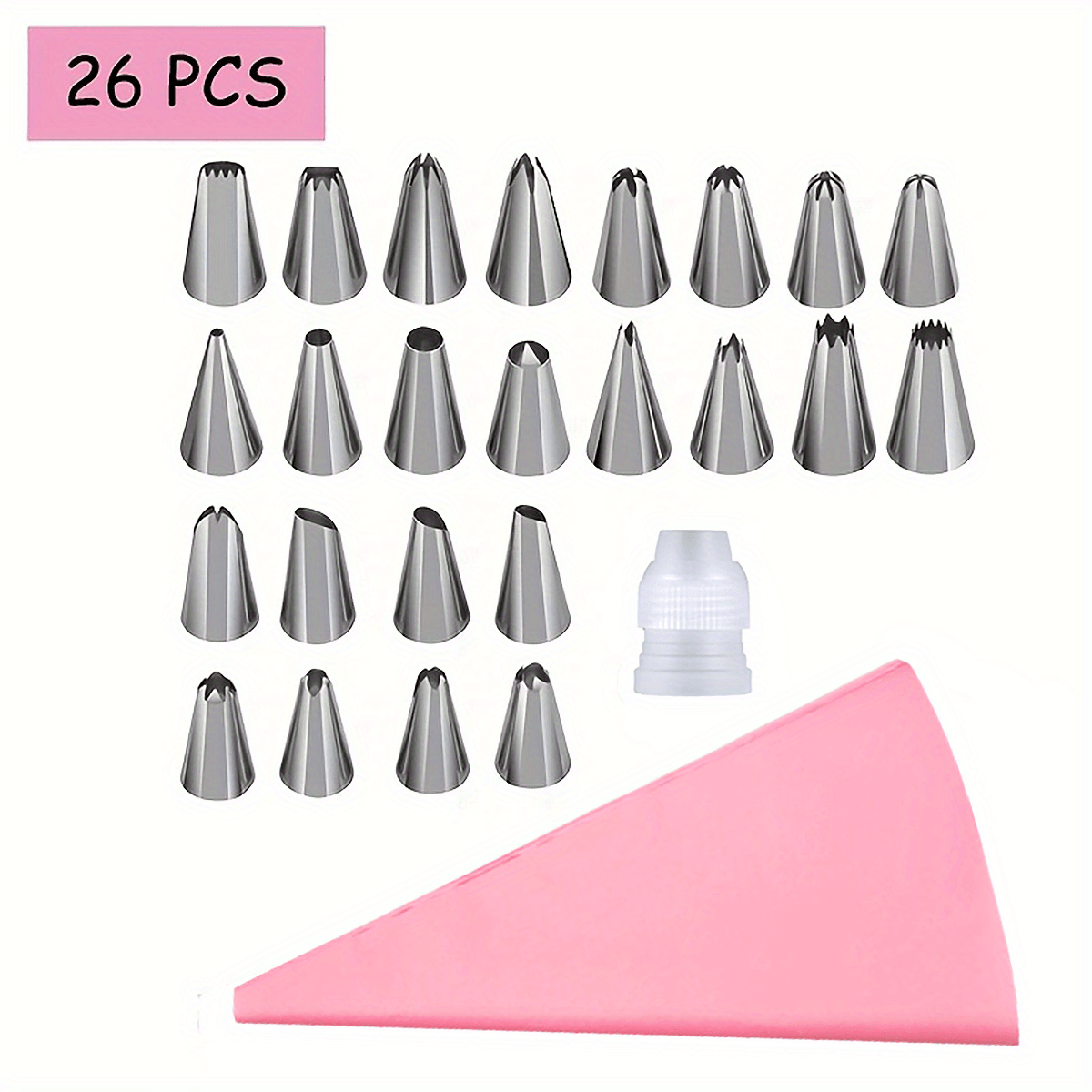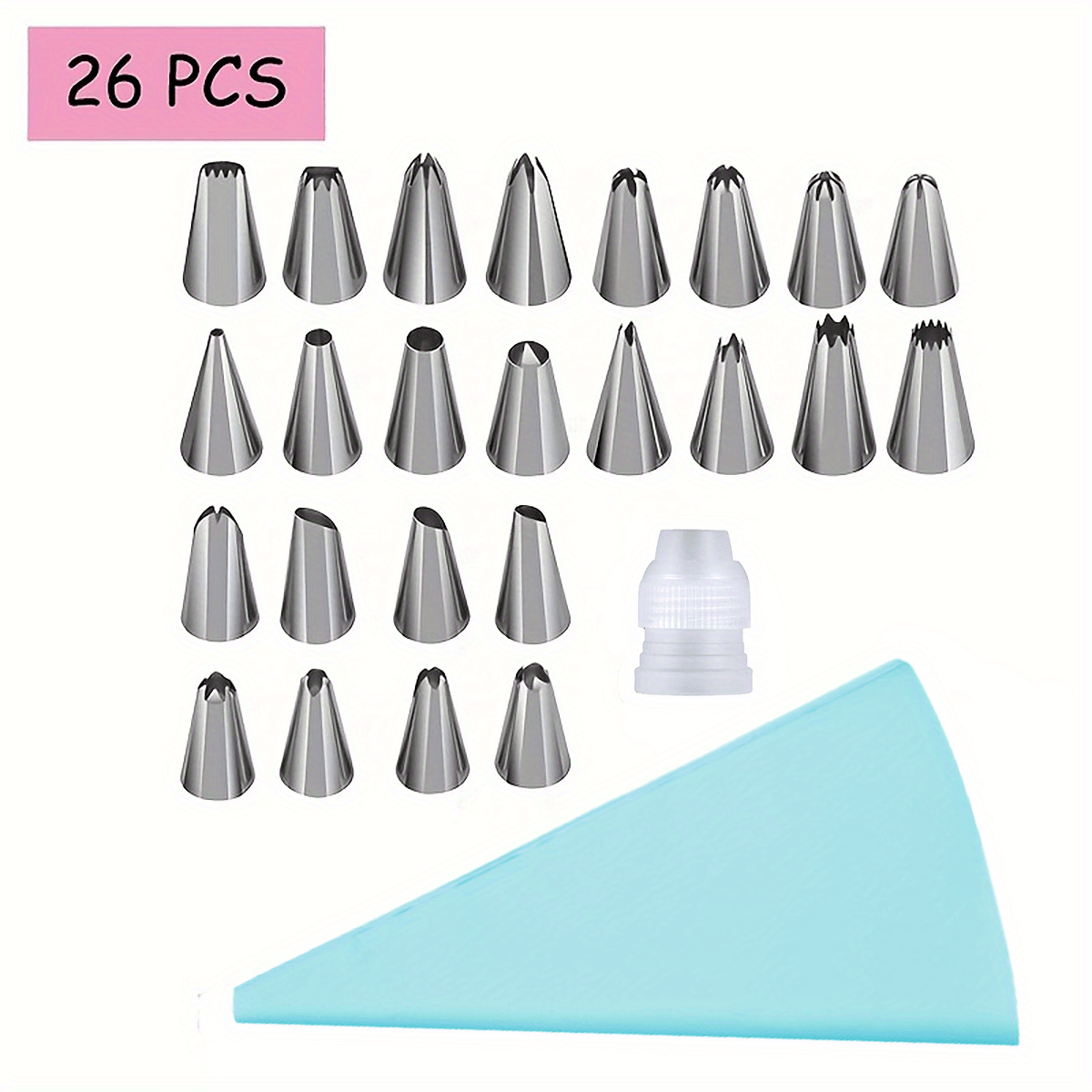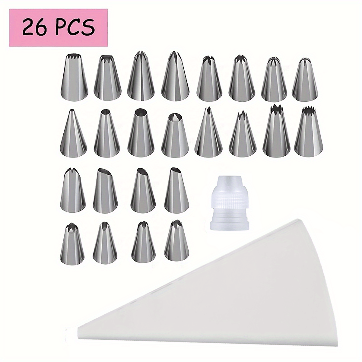8/26 zanglamas po'latdan yasalgan muzqaymoq va piping uchlari to'plami, 6/24 nozzle, pishirish sumkasi va couplerni o'z ichiga oladi. Tortlar, kekslar, pechene va shirinliklarni bezash uchun mukammal. Pishirish va chiroyli bezaklar yaratish uchun ideal.