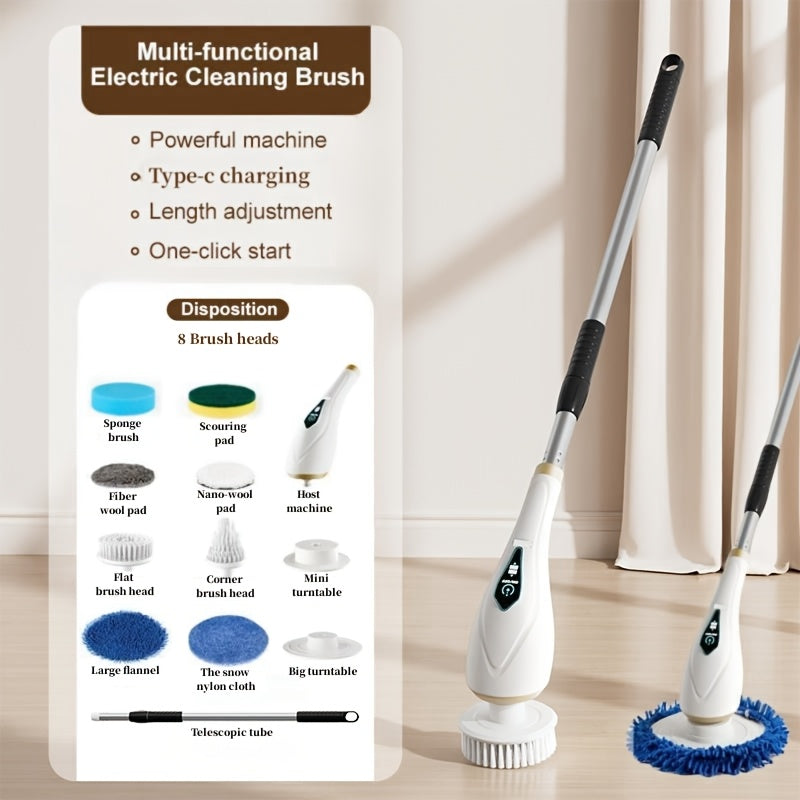 8 ta elektr tozalash cho'tkasi to'plami, simsiz 2 tezlikda aylanuvchi scrubber