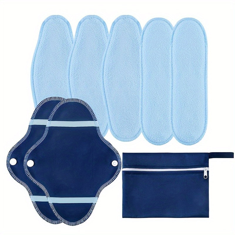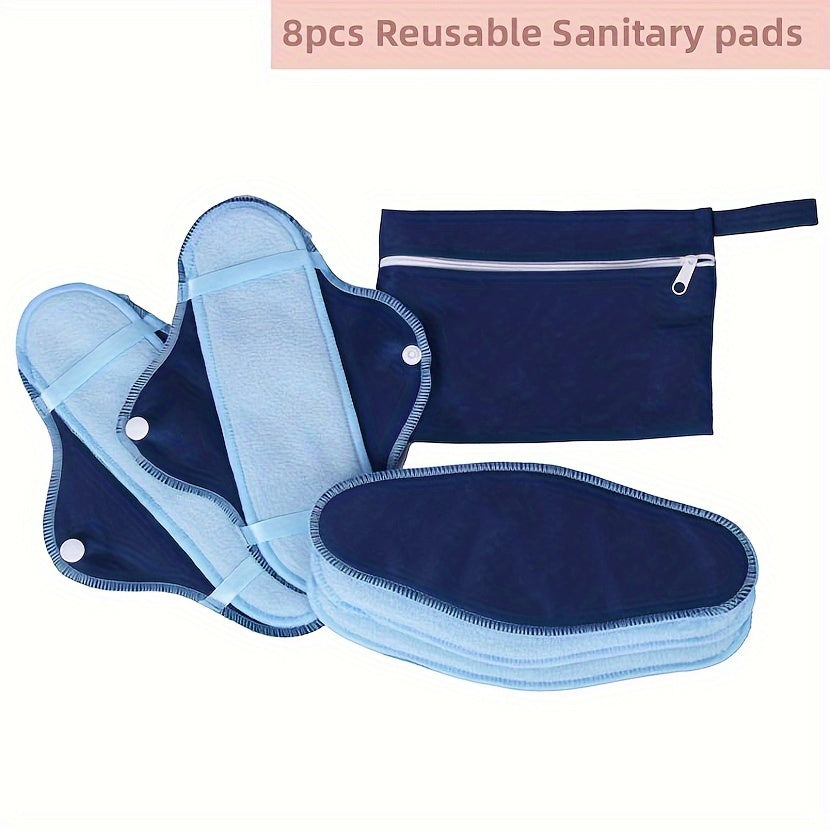 8 ta qayta ishlatiladigan menstruatsiya yostiqlari to'plami, saqlash sumkasi bilan, yuqori singdirish qobiliyatiga ega mikro fliys, 3 ta yostiq qopqog'i, fabrikadan ulgurji gigienik yostiq to'plami