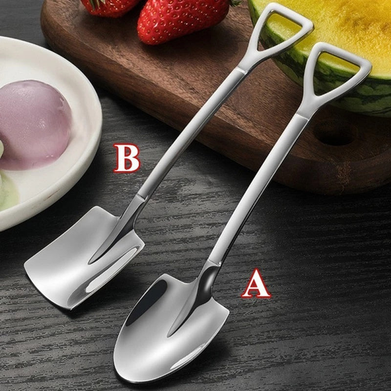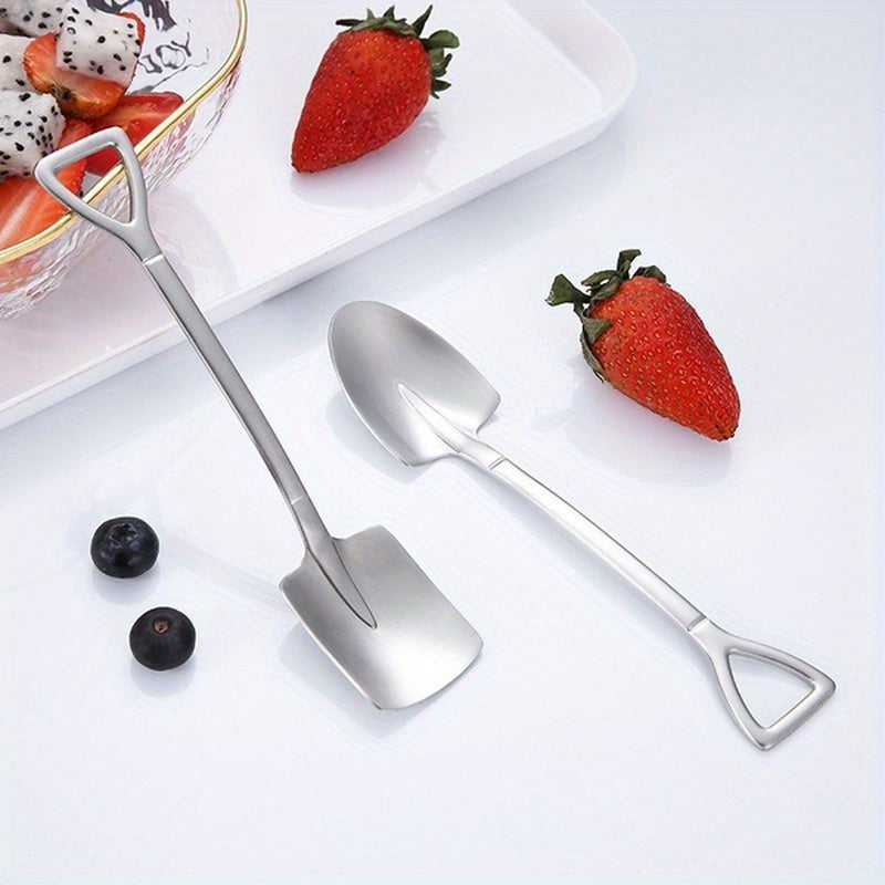 8 ta zanglamas po'latdan yasalgan qahva va muzqaymoq qoshiq to'plami - qulay tutqichlari bilan noyob lopata shaklidagi dizayn, tadbirlar va bayramlar uchun ideal