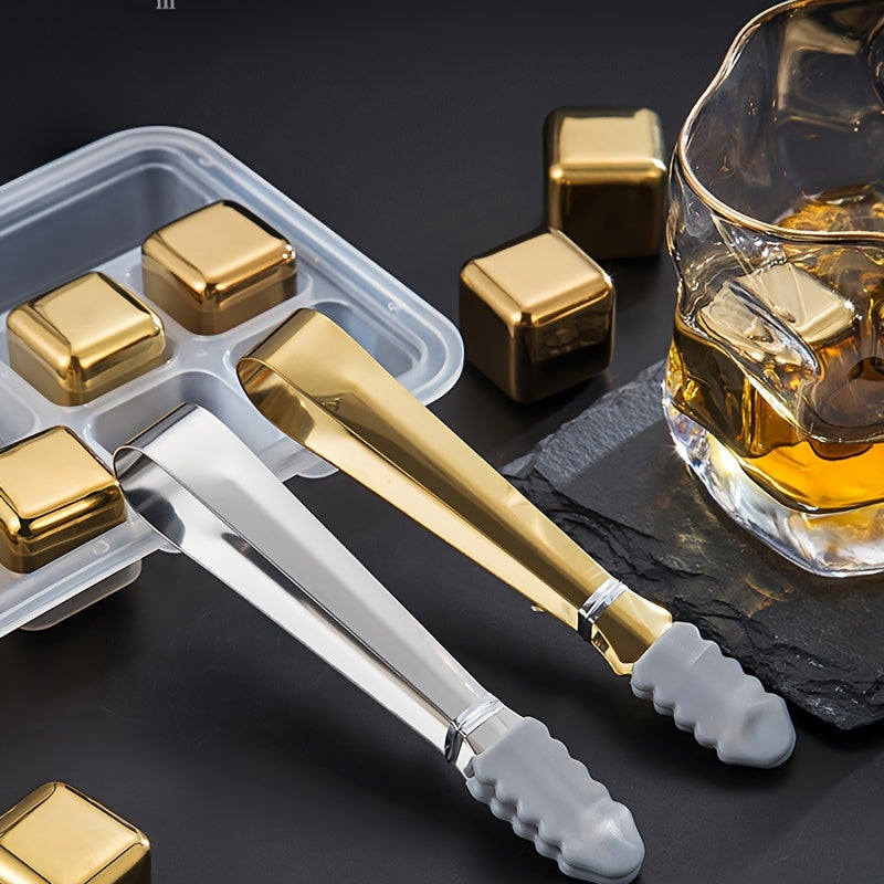 8 ta zanglamaydigan po'latdan yasalgan viski toshlari va Silikon tilim bilan oltin rangli sovutish uchun ichimliklar to'plami