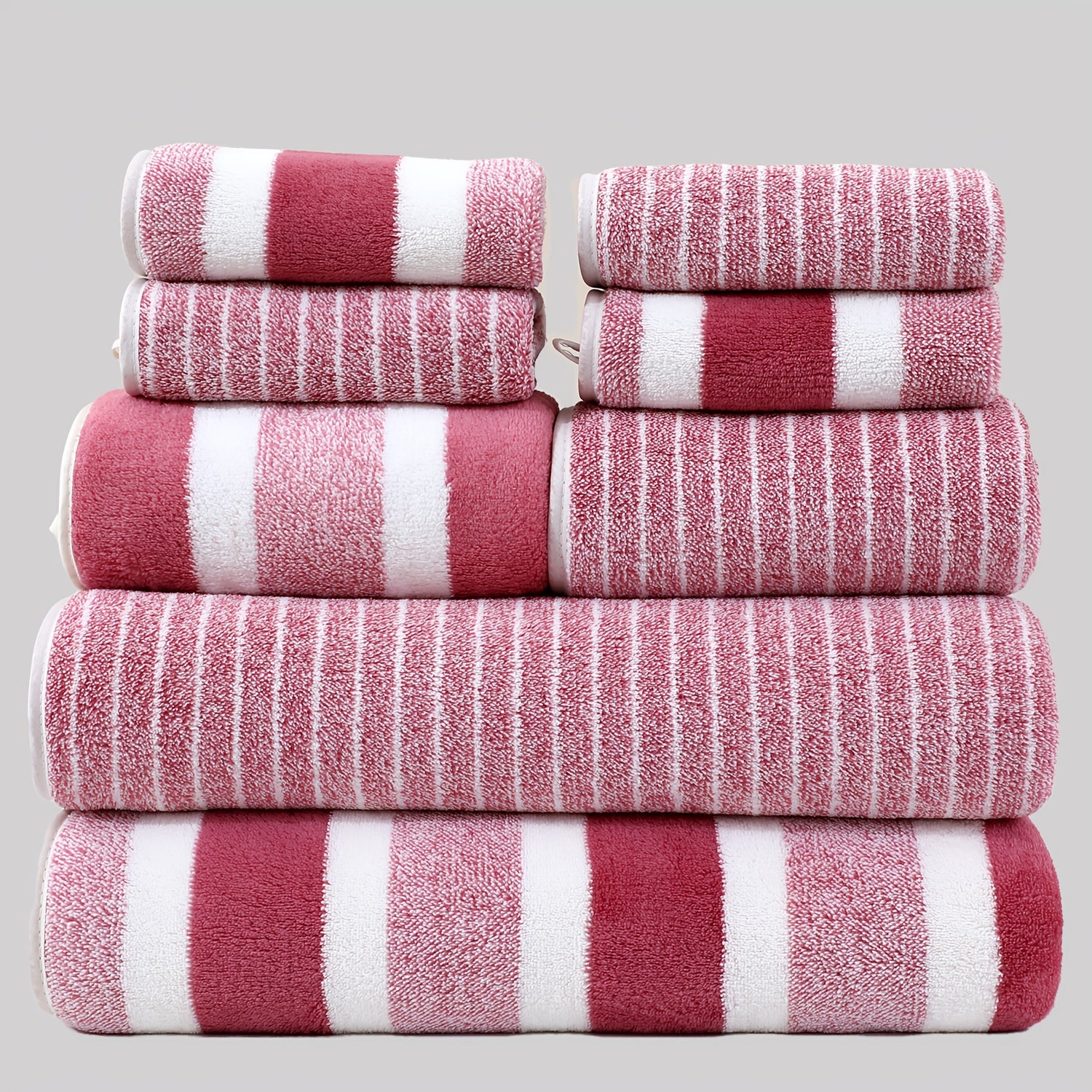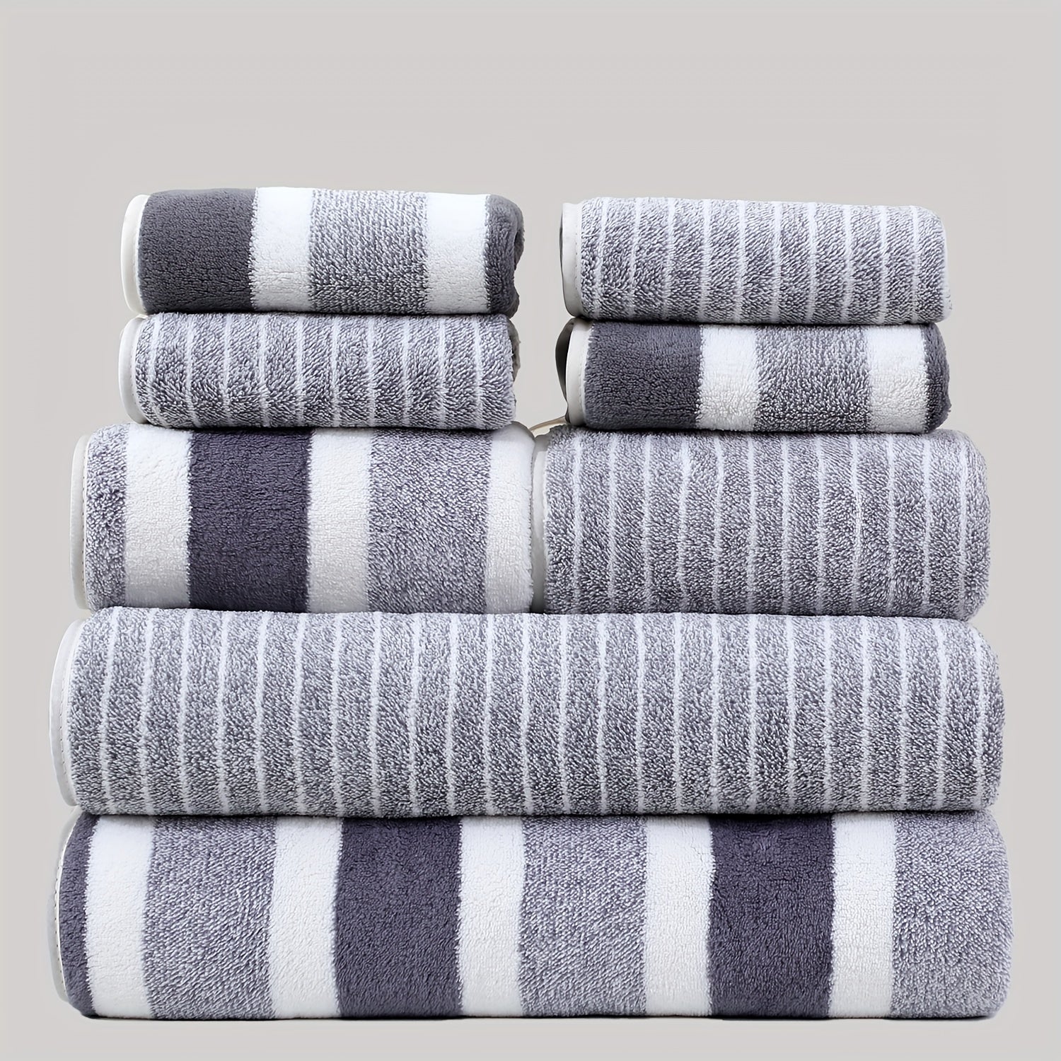 8 ta chiziqli mikroto'qima sochiq to'plami: 4 ta yuvish sochiqlari, 2 ta qo'l sochiqlari va 2 ta hammom sochiqlari. Suvni yaxshi so'radi, tez quriydi va juda yumshoq. Uy hammomida foydalanish uchun ideal.