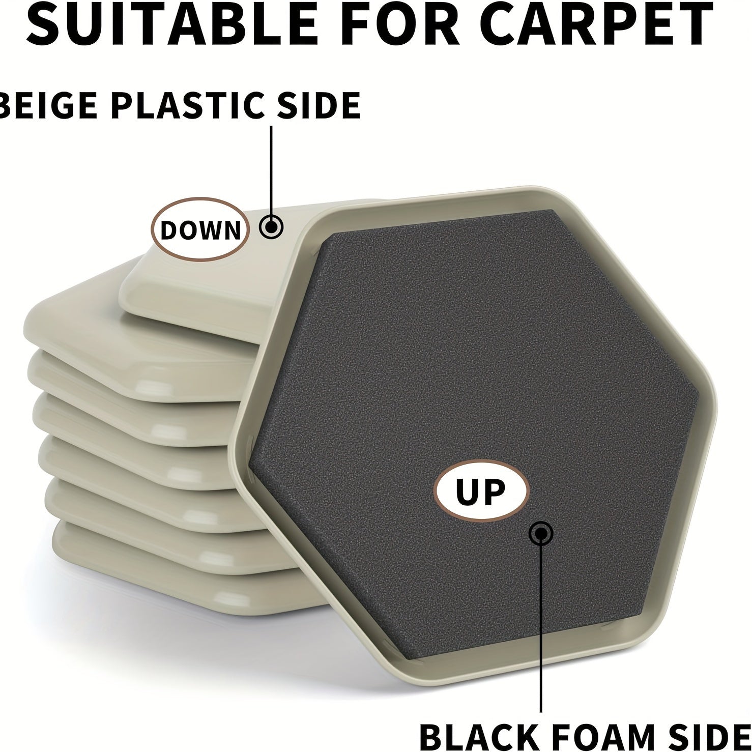 8 ta kuchli mebel slayderlari to'plami - gilamlar uchun olti burchakli plastik ko'chiruvchilar, polni himoya qilish uchun qayta ishlatilishi mumkin, mebel oyoqlarini osonlik bilan sirg'aladi.
