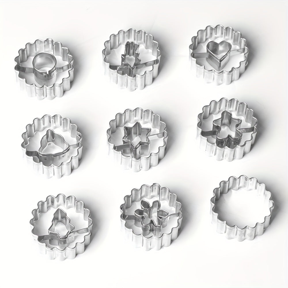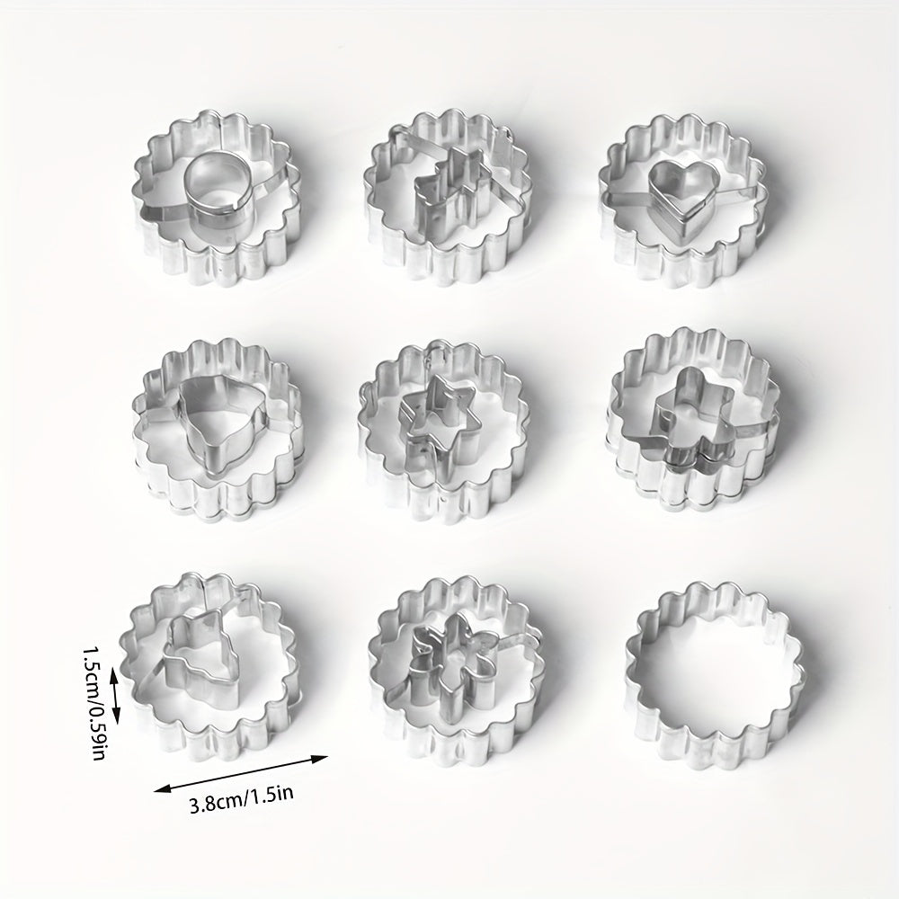 9 ta Rojdestvo Pechene Kesgichlari to'plami, zanglamas po'latdan yasalgan - Gingerbread odam, qor to'pi, yulduz, qo'ng'iroq va daraxt kabi bayram shakllarini o'z ichiga oladi - Bayram pishirish uchun ideal