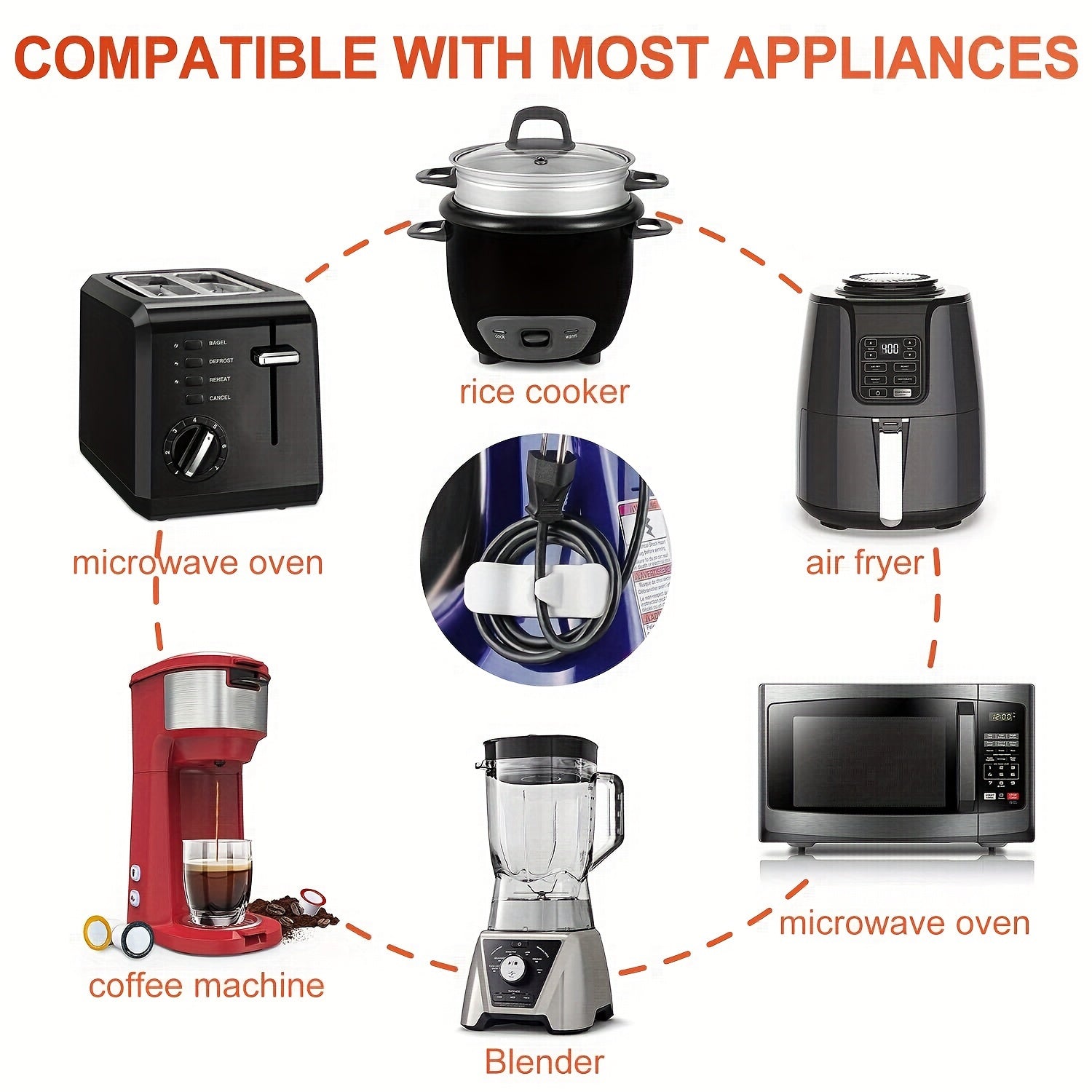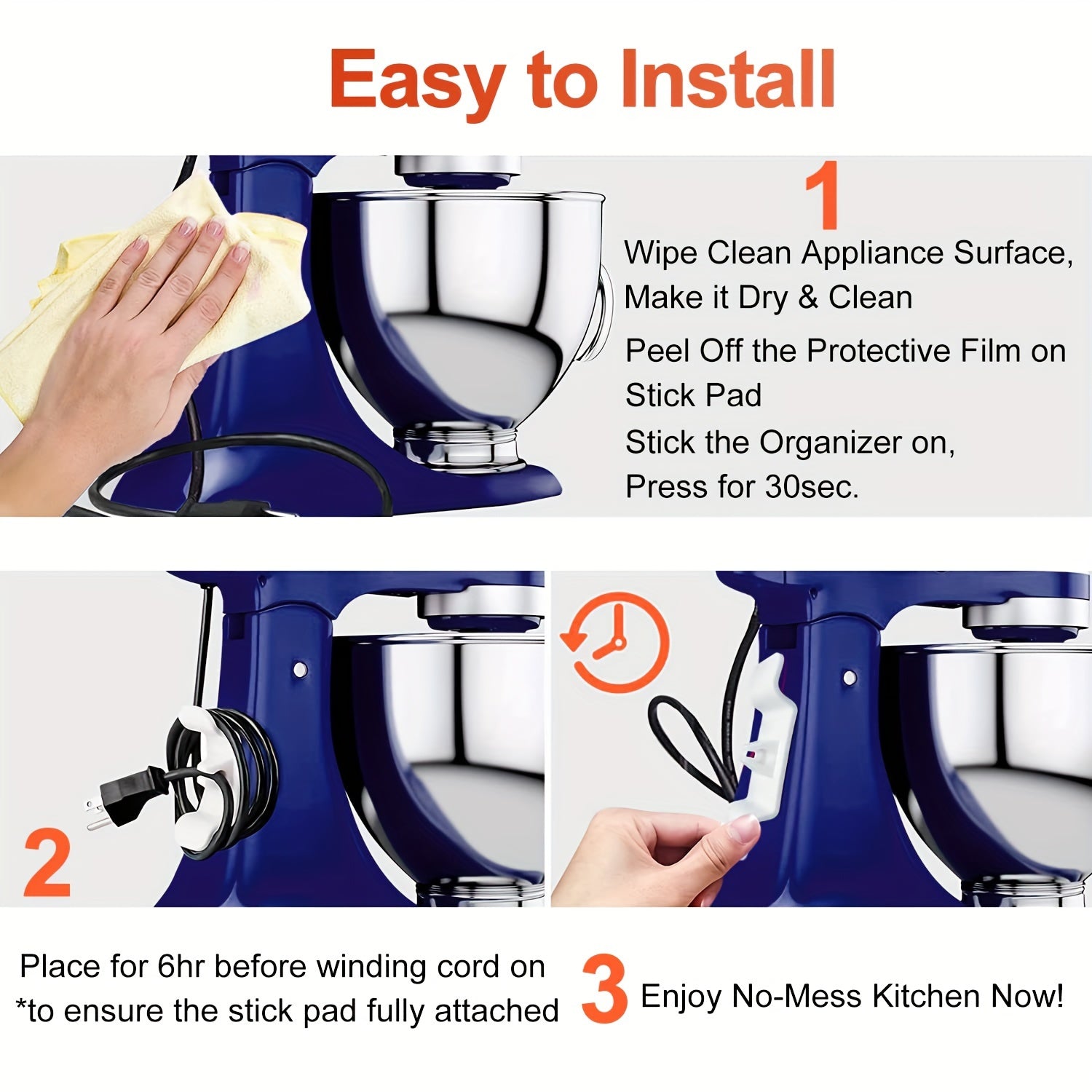 9 ta kabelni tartibga soluvchi to'plami oshxona jihozlari uchun - Blenderlar, tostlar, qahva tayyorlagichlar, bosimli pishirgichlar va havo fritözlari uchun yopishtiriladigan kabel o'rashlar va uskunalar kiradi.