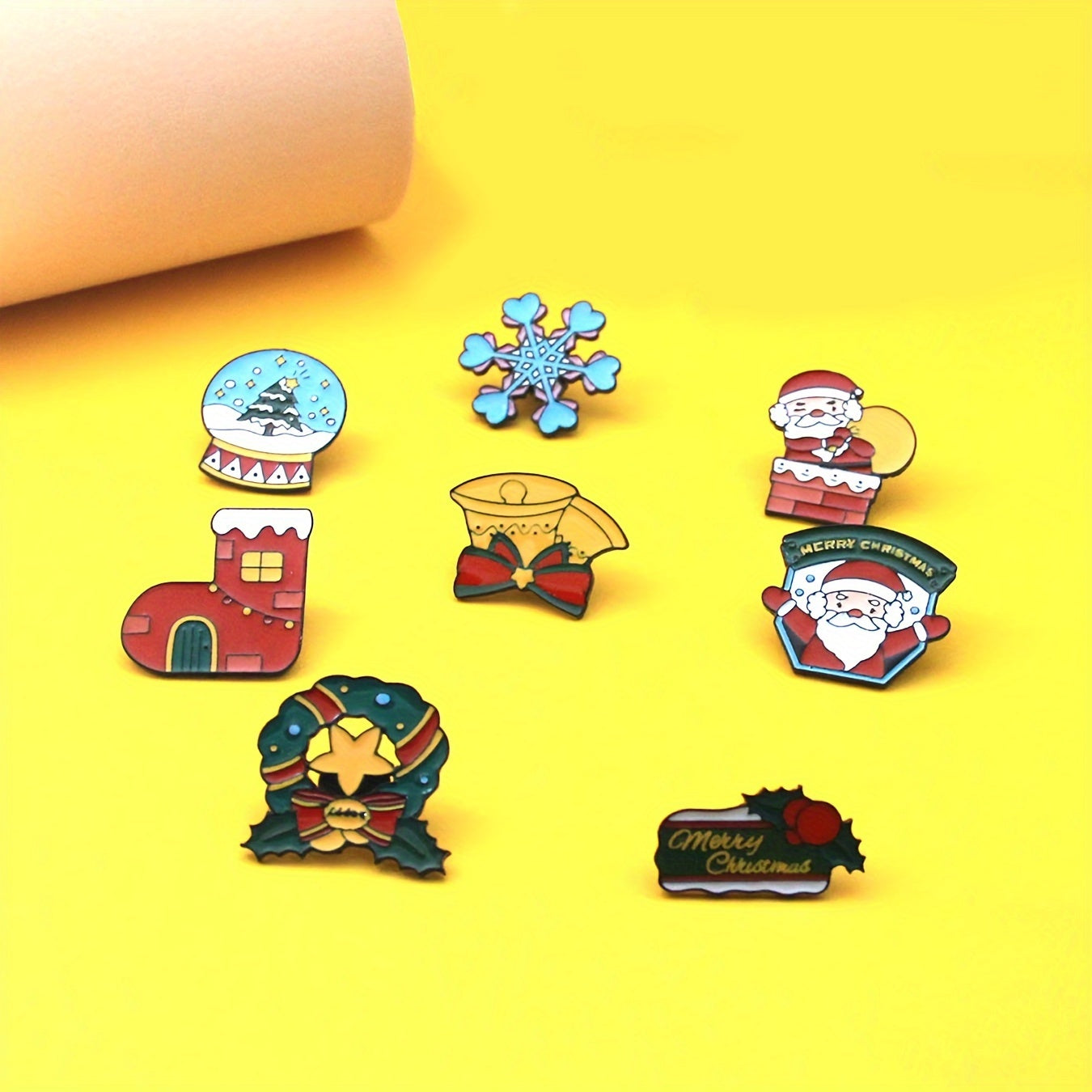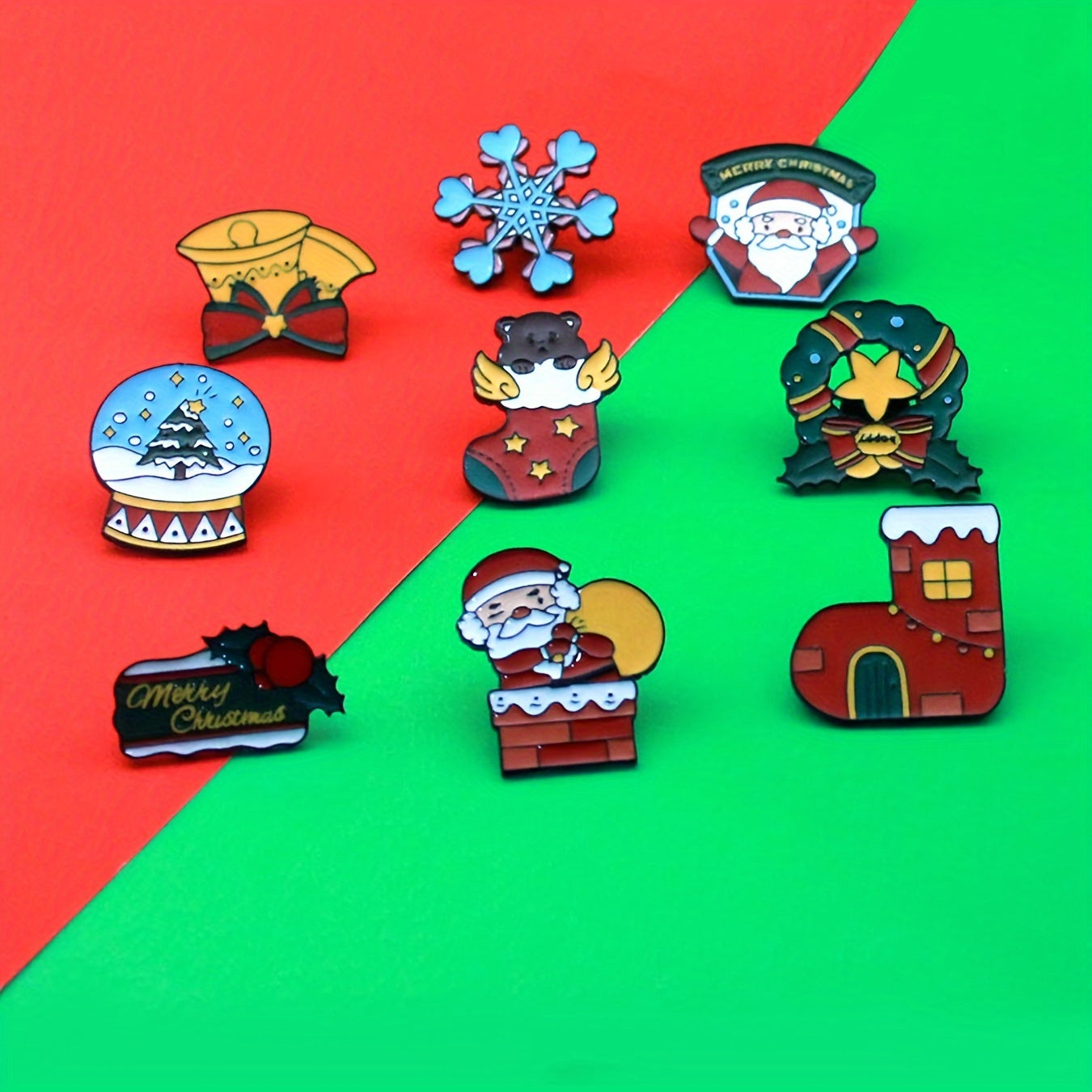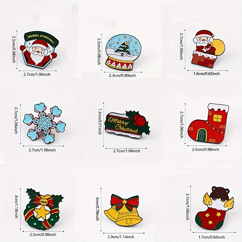 9 ta Rojdestvo broshlari to'plami, Santa, qoraxona, multfilm uslubidagi alloy pinlar, kalitlar va kurtkalar uchun