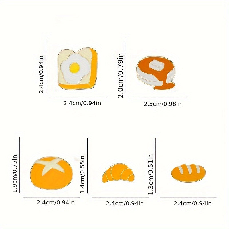 Beshta multfilm ilhomlantirgan chiroyli nonushta oziq-ovqat emal pinlari, non shaklidagi pirojnoe, tuxum mavzusidagi yelka belgilari sumkalar va zargarlik uchun