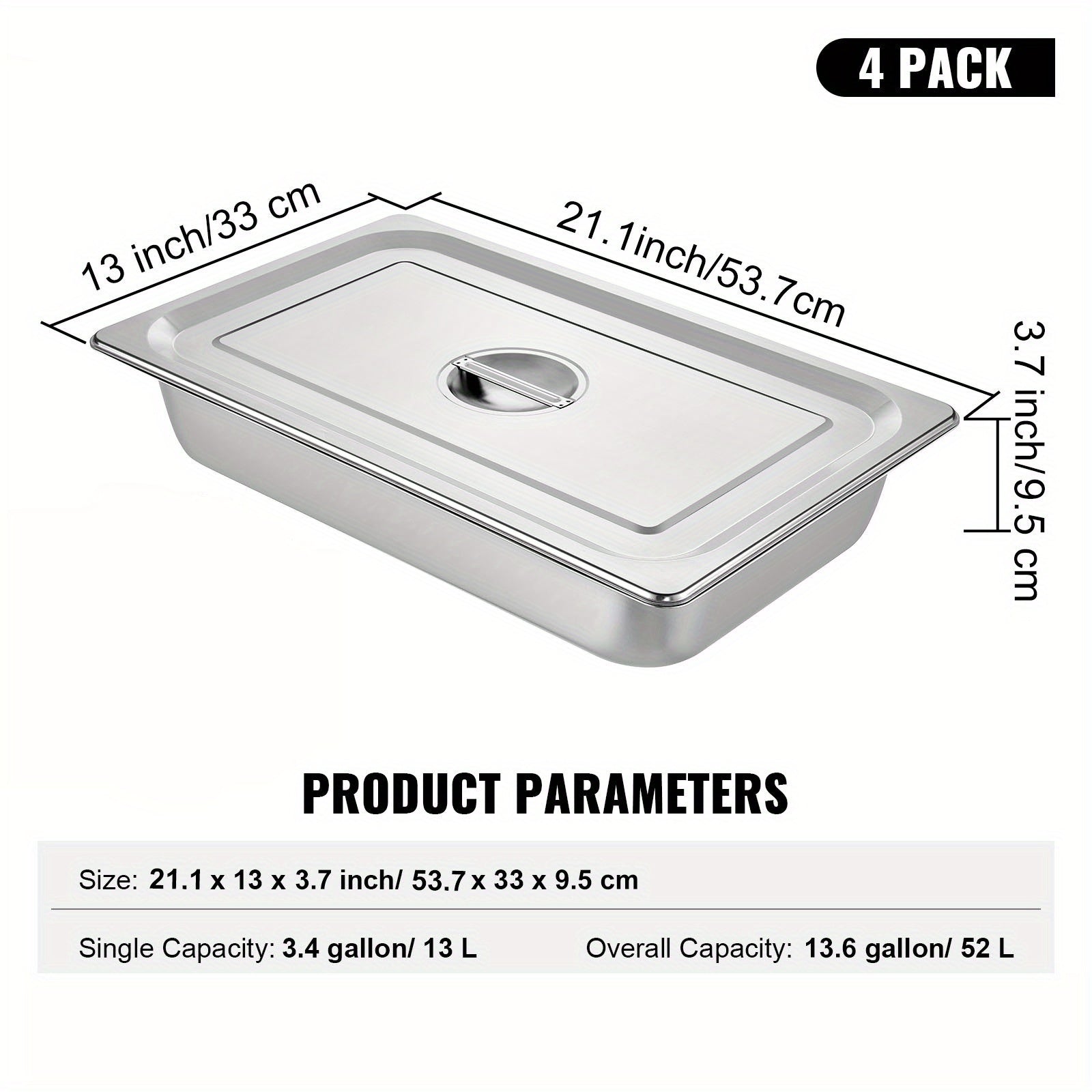 4 ta zanglamaydigan po'latdan yasalgan mehmonxona panolari to'plami, qopqog'lar bilan, 13L, pechga chidamli, tijorat maqsadlarida foydalanish uchun