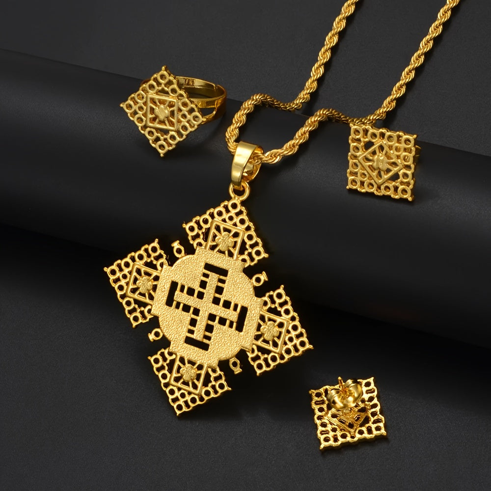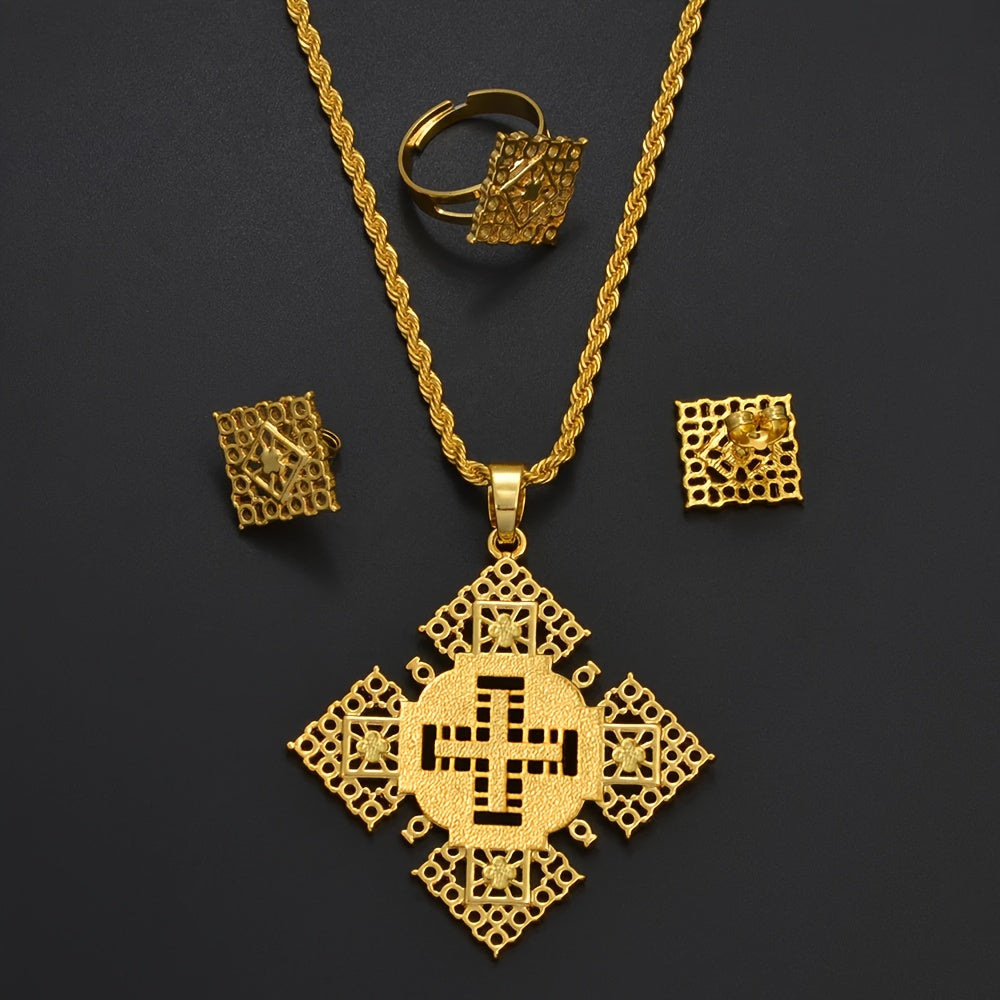 Efiopiya va Eritreyadan olingan diniy zargarlik to'plami, pendant bilaguzuk, marjonlar va uzukni o'z ichiga oladi. Afrikalik ayollarning to'ylarida go'zal aksessuarlar.