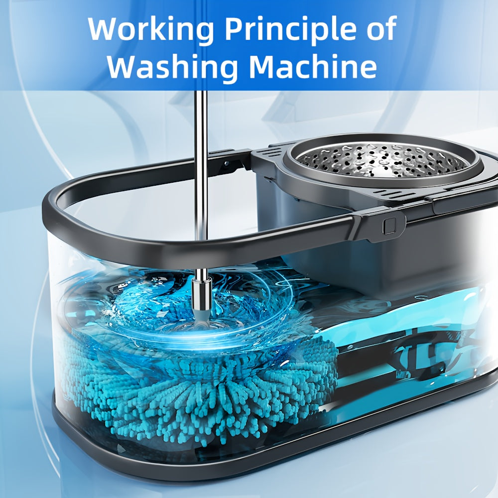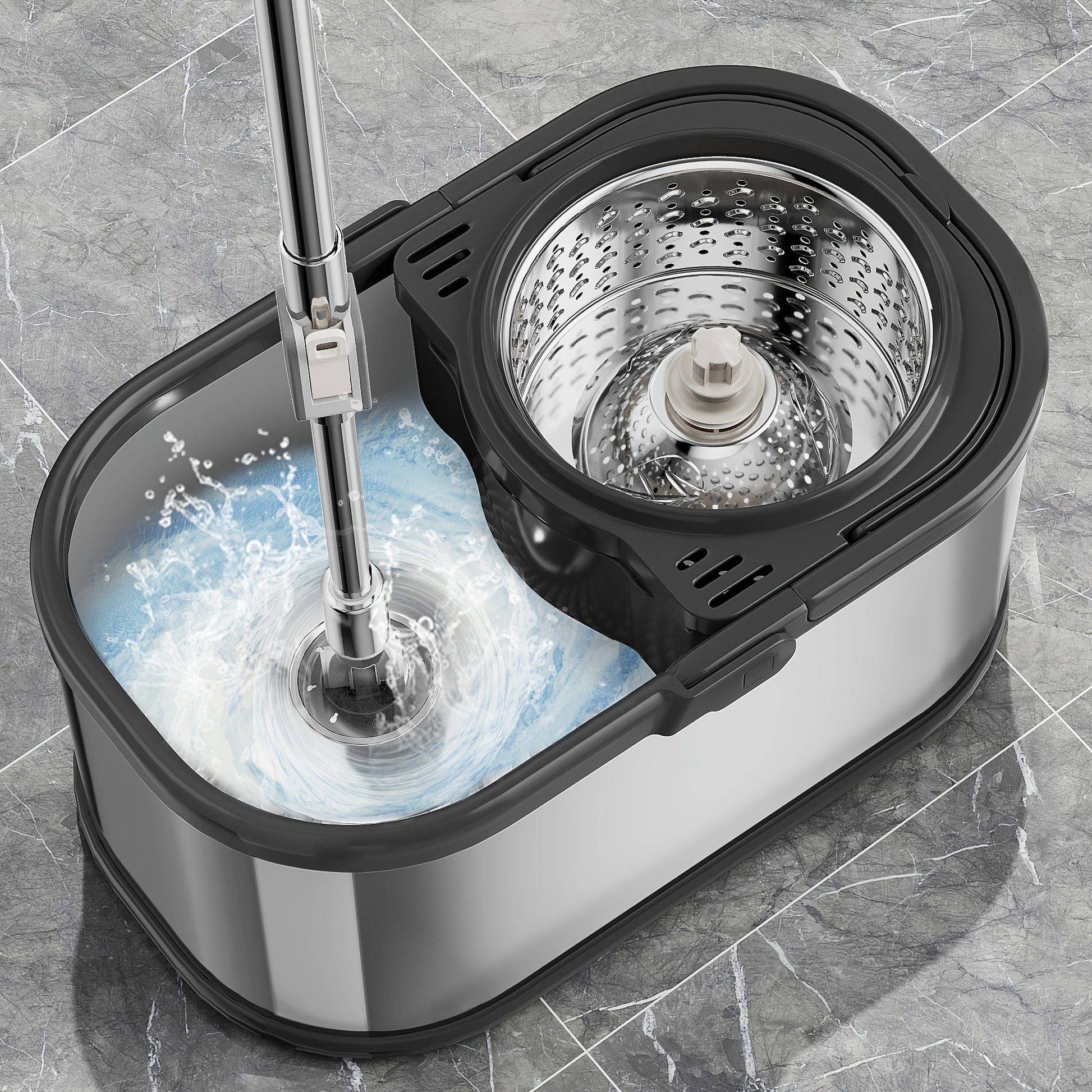Aylanadigan Mop Chekasi - Uy oshxona pollarini tozalash uchun ideal - Qattiq va plitka yuzalarida quruq yoki nam holda ishlatilishi mumkin - 2 ta qayta ishlatiladigan super nozik tolali mop boshliqlari bilan birga keladi