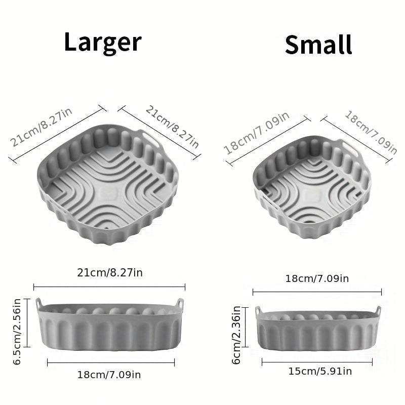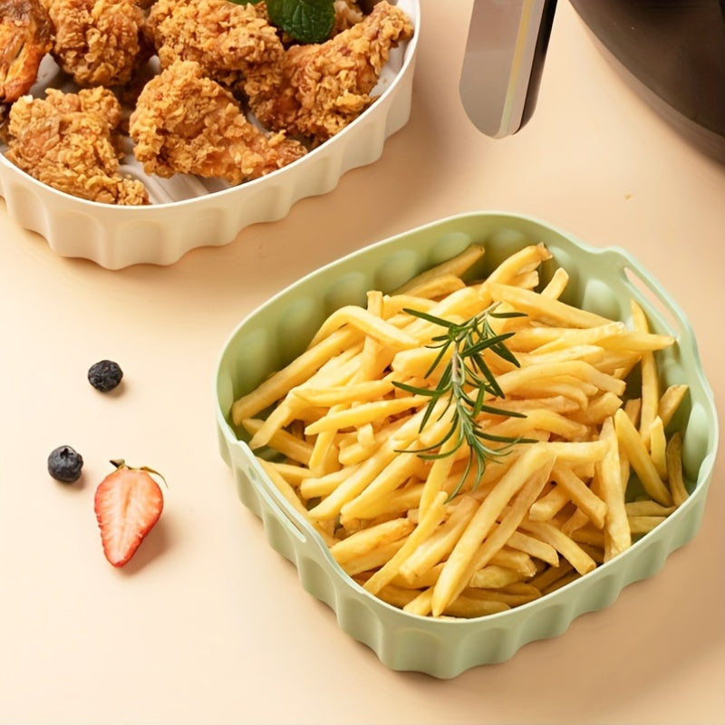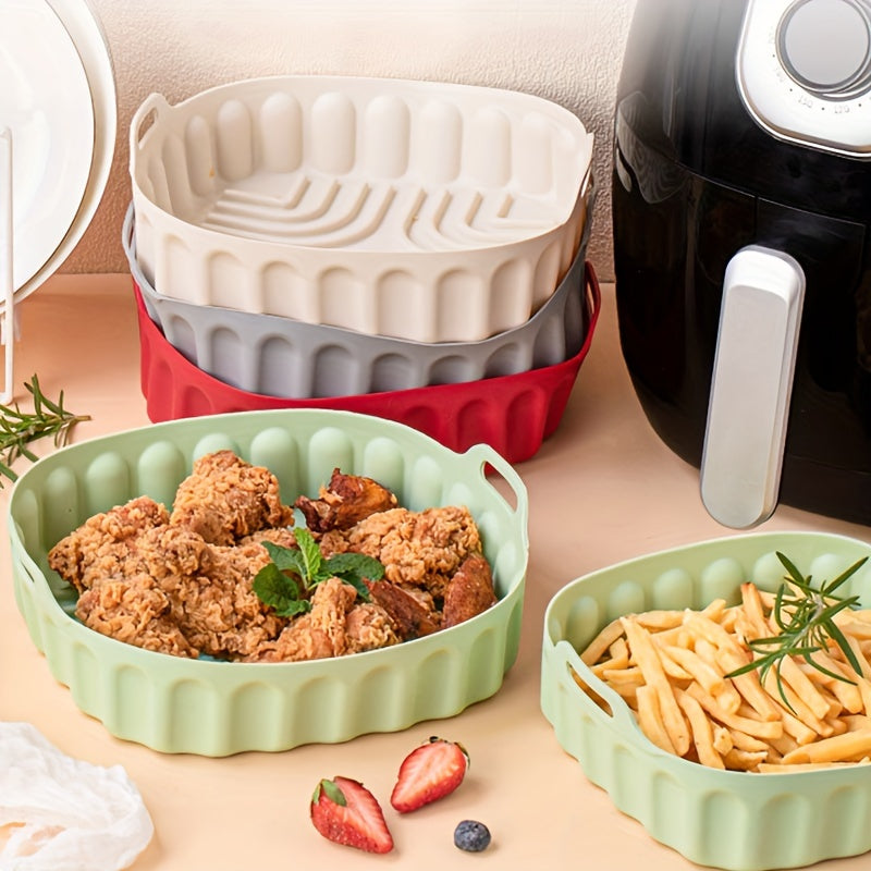 Qo'ltiqli silikon havo fritöz idishlari to'plami - chuqur qovurish uchun katta va kichik to'g'ri burchakli idishlarni o'z ichiga oladi