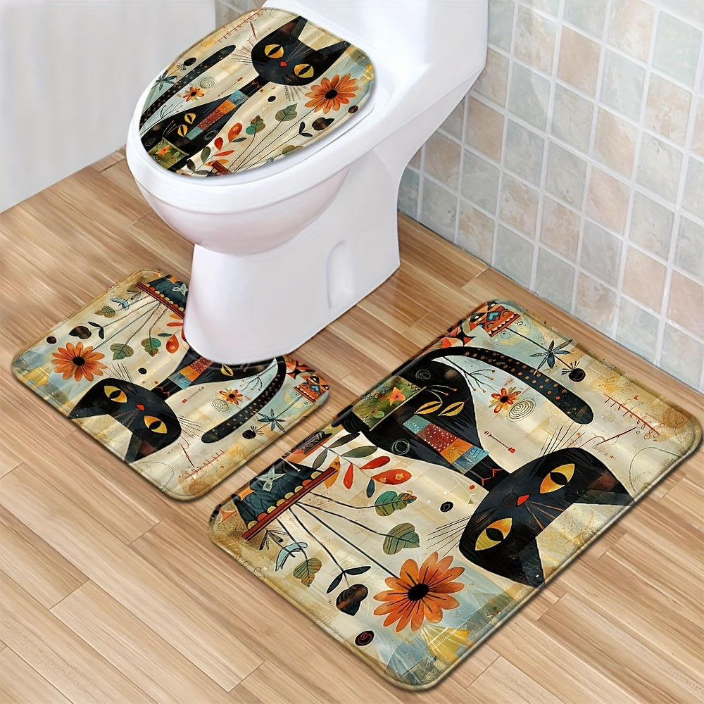 Qora mushuk quyosh gulining hammom pol matosi to'piq qopqog'i eshik matosi sirpanmaydigan