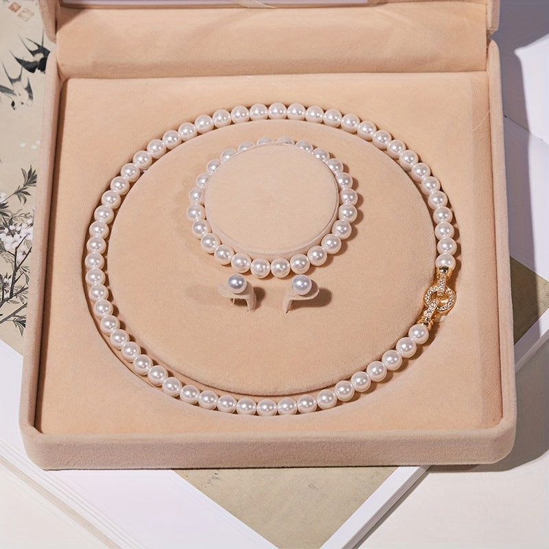 Uchta Yuqori Bo'yin Zanjiri to'plami, Tabiiy Shirin Suv Marvaridlari, Qobiq va Ona Marvarid Beadlari bilan Birga Ayollar uchun Mos Keltirilgan Bilaguzuk
