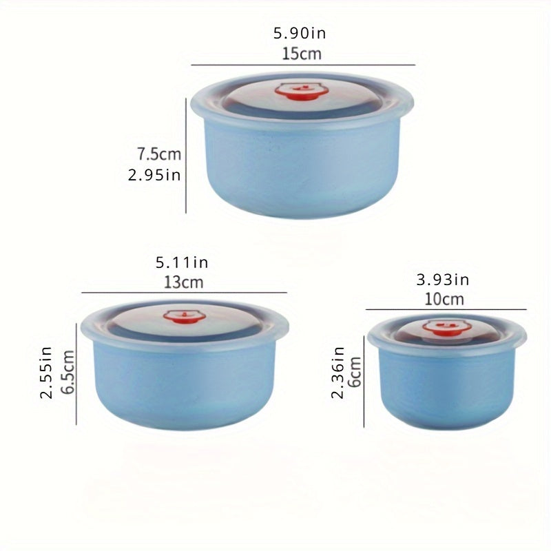 Uchta bug'doy donasi plastmassa idishlar to'plami, mikroto'lqinli pechga mos, dumaloq Bento qutilari, yengil yashil, qopqog'lar bilan, oziq-ovqat saqlash va sayohat uchun