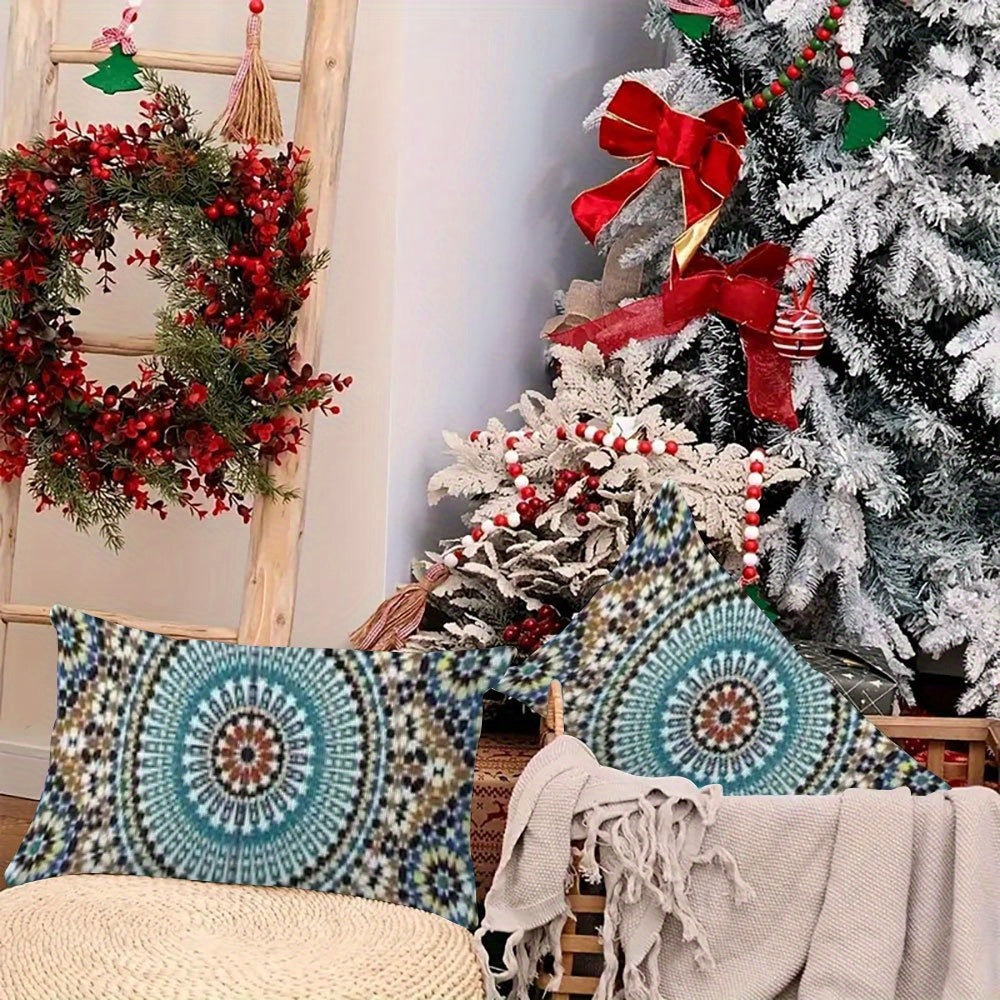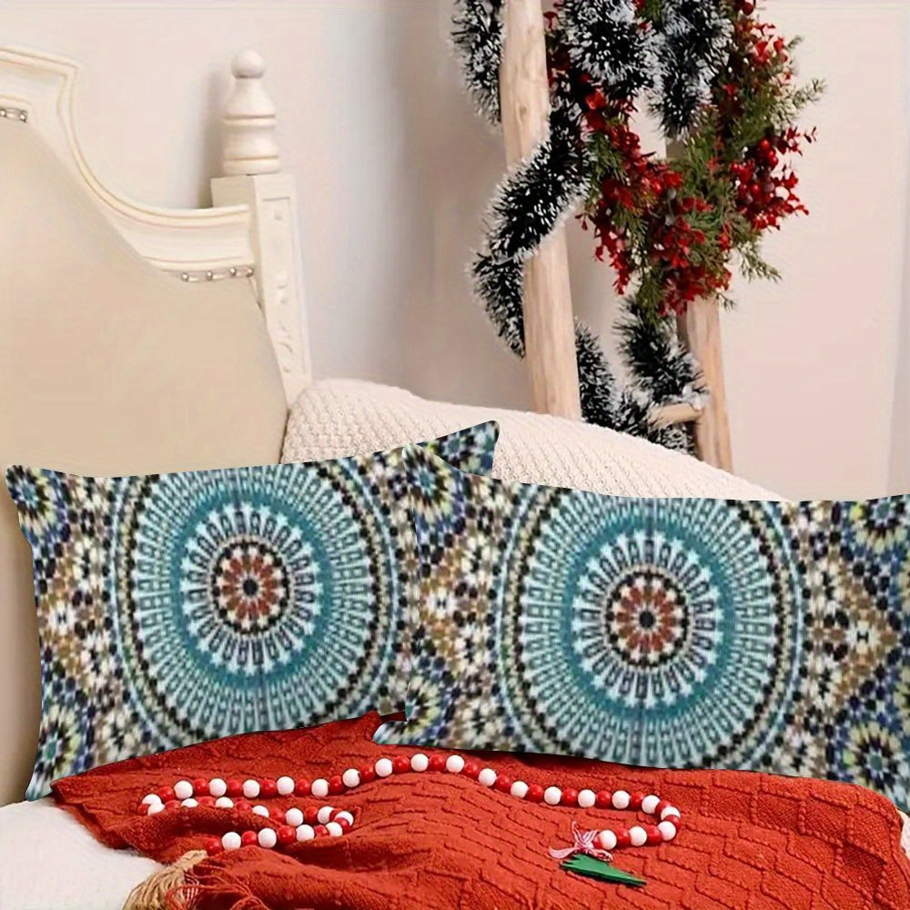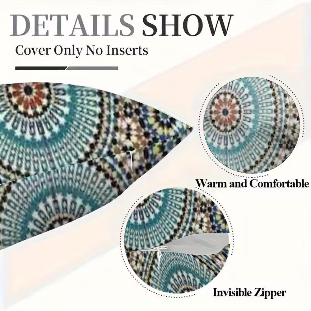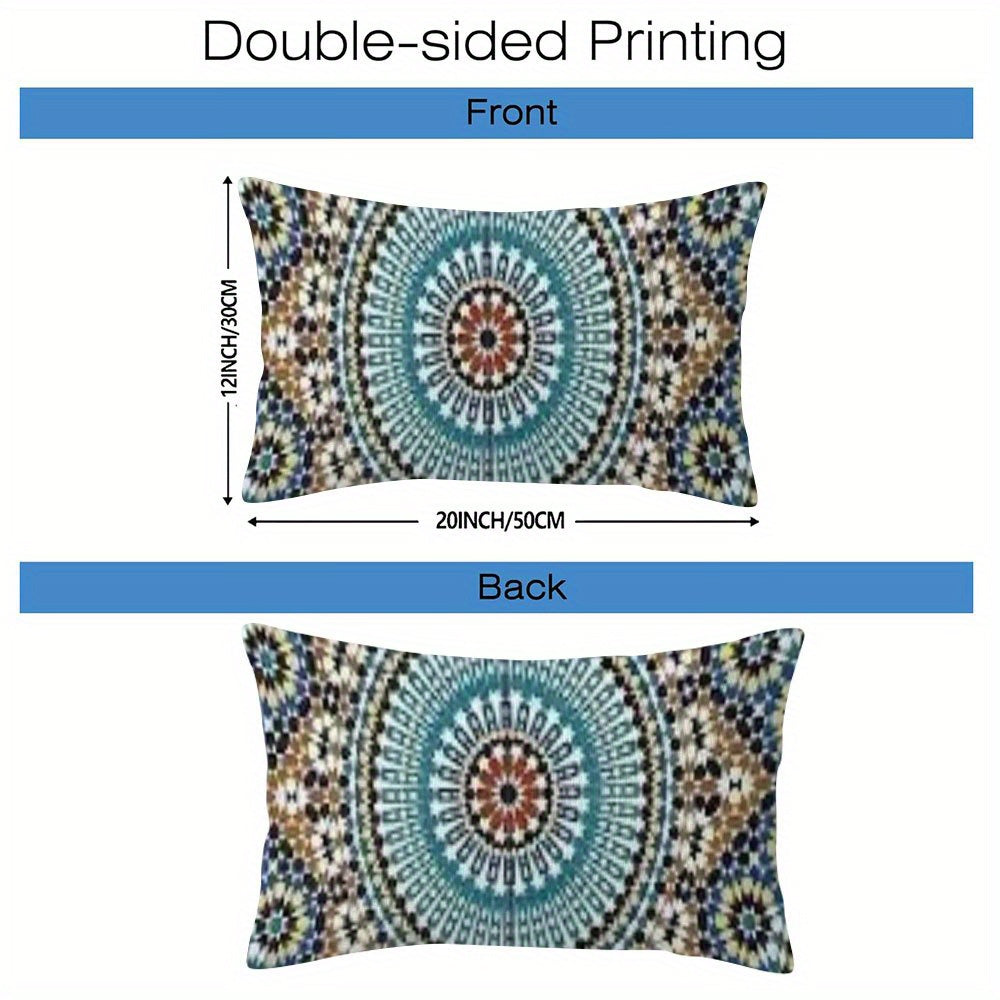 Ikki dona Marokash Zellij san'ati naqshli yostiq qopqog'i to'plami, har biri 30.48x50.8 sm o'lchamda. Divan yoki yotoq xonasi bezatishiga uslub qo'shish uchun mo'ljallangan ikki tomonlama qisqa plush dizayni mavjud.