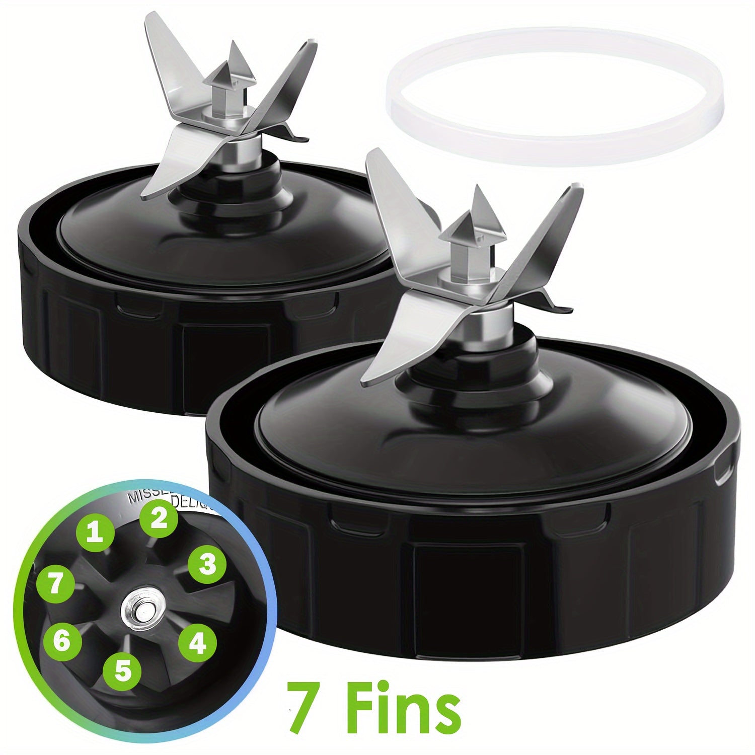 Nutri Ninja Blender Auto IQ BL480 BL482 BL642 BL682 NN102 uchun rezina qozon bilan yetti finli tortish pichoqi to'plami, barcha blender almashtirish qismlari bilan mos keladi.