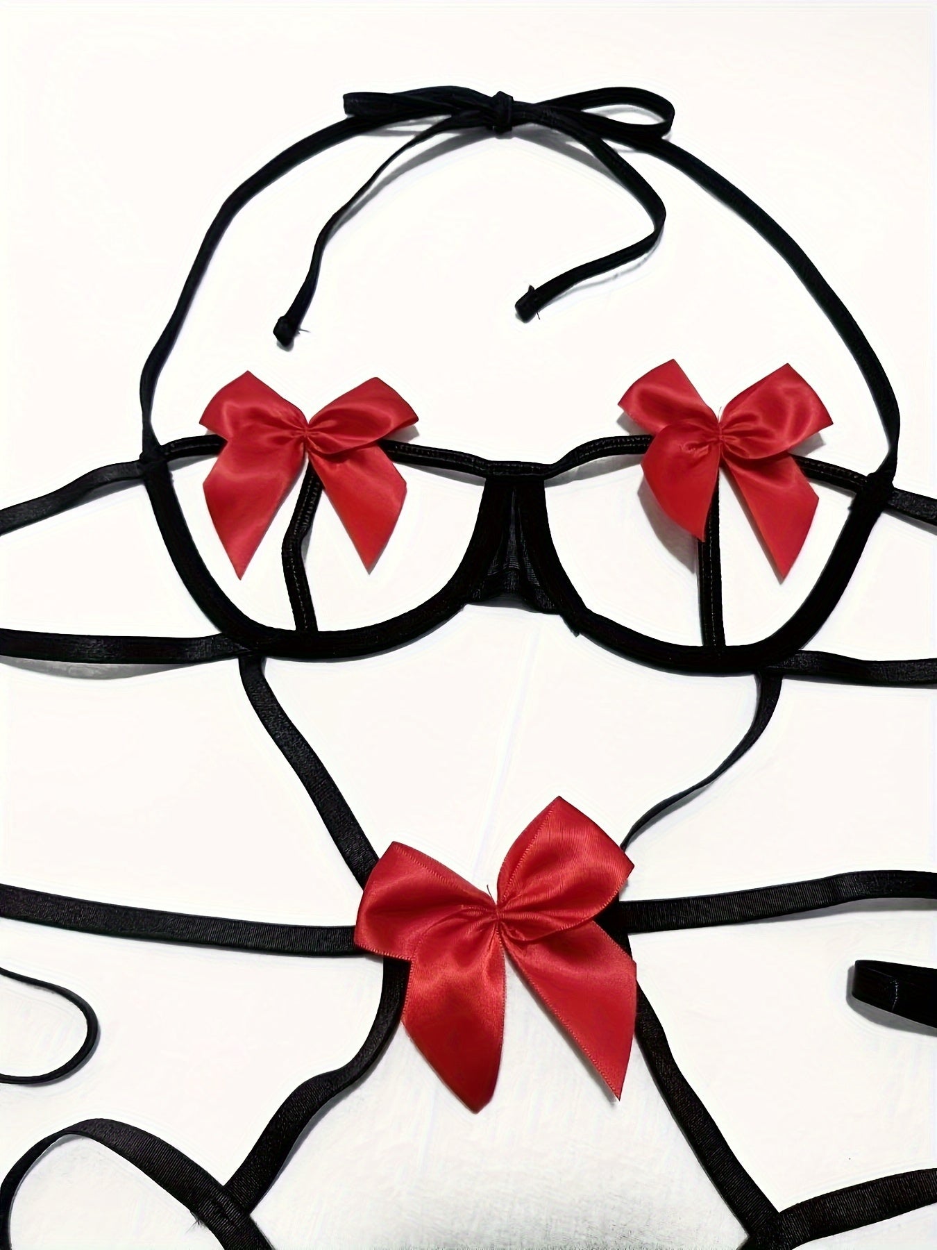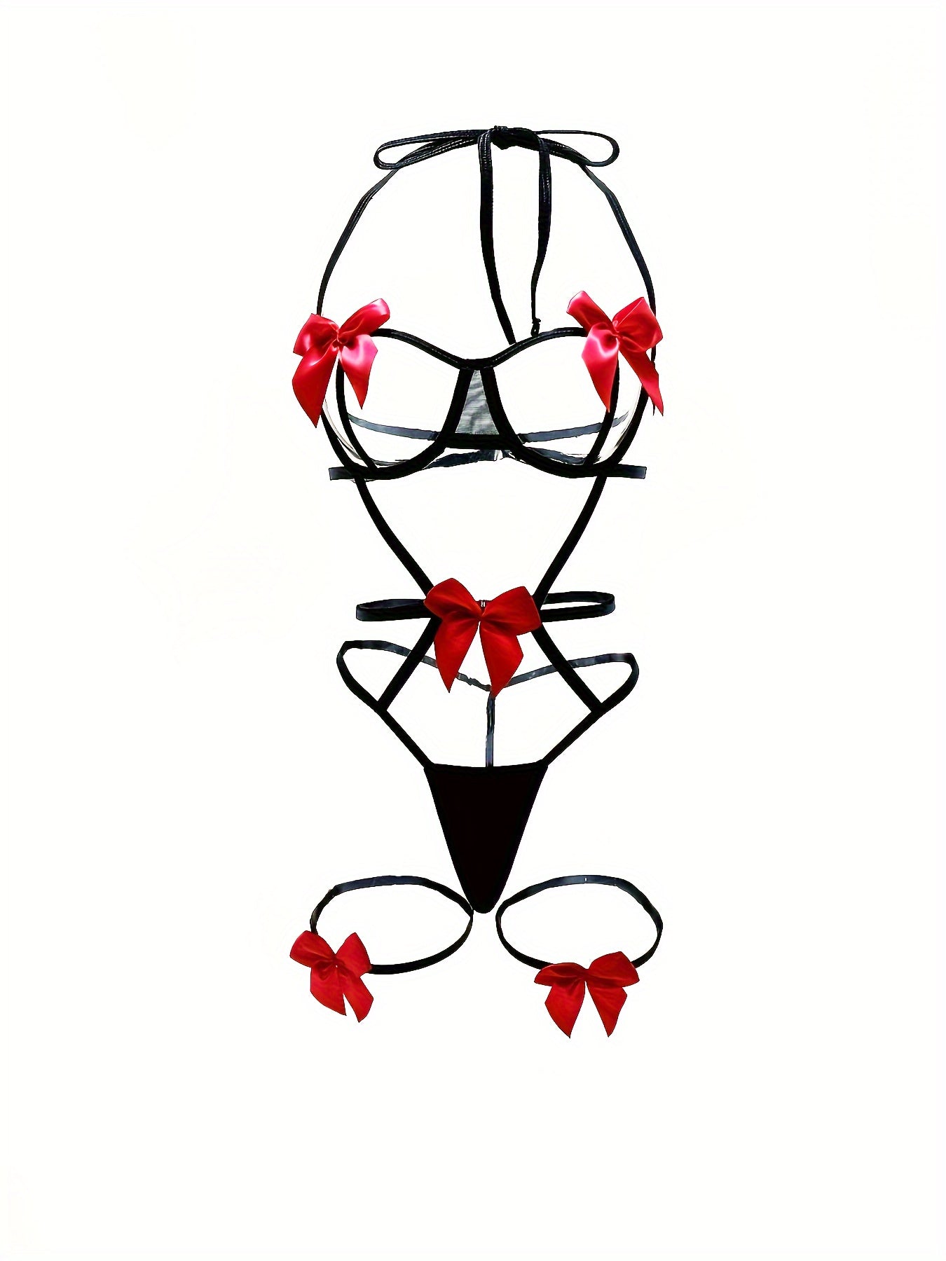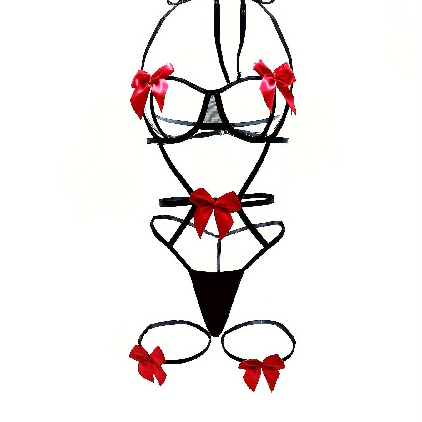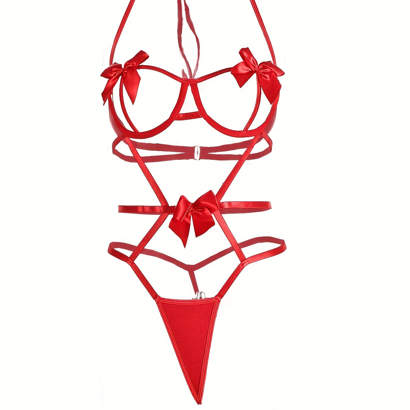 Jozibali bog'ichli teddy, ochiq chashka halter va oyoq halqalari bilan.