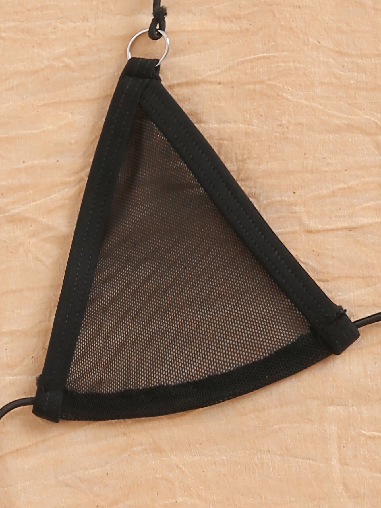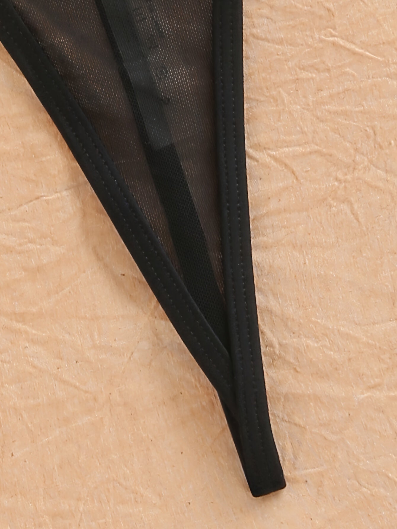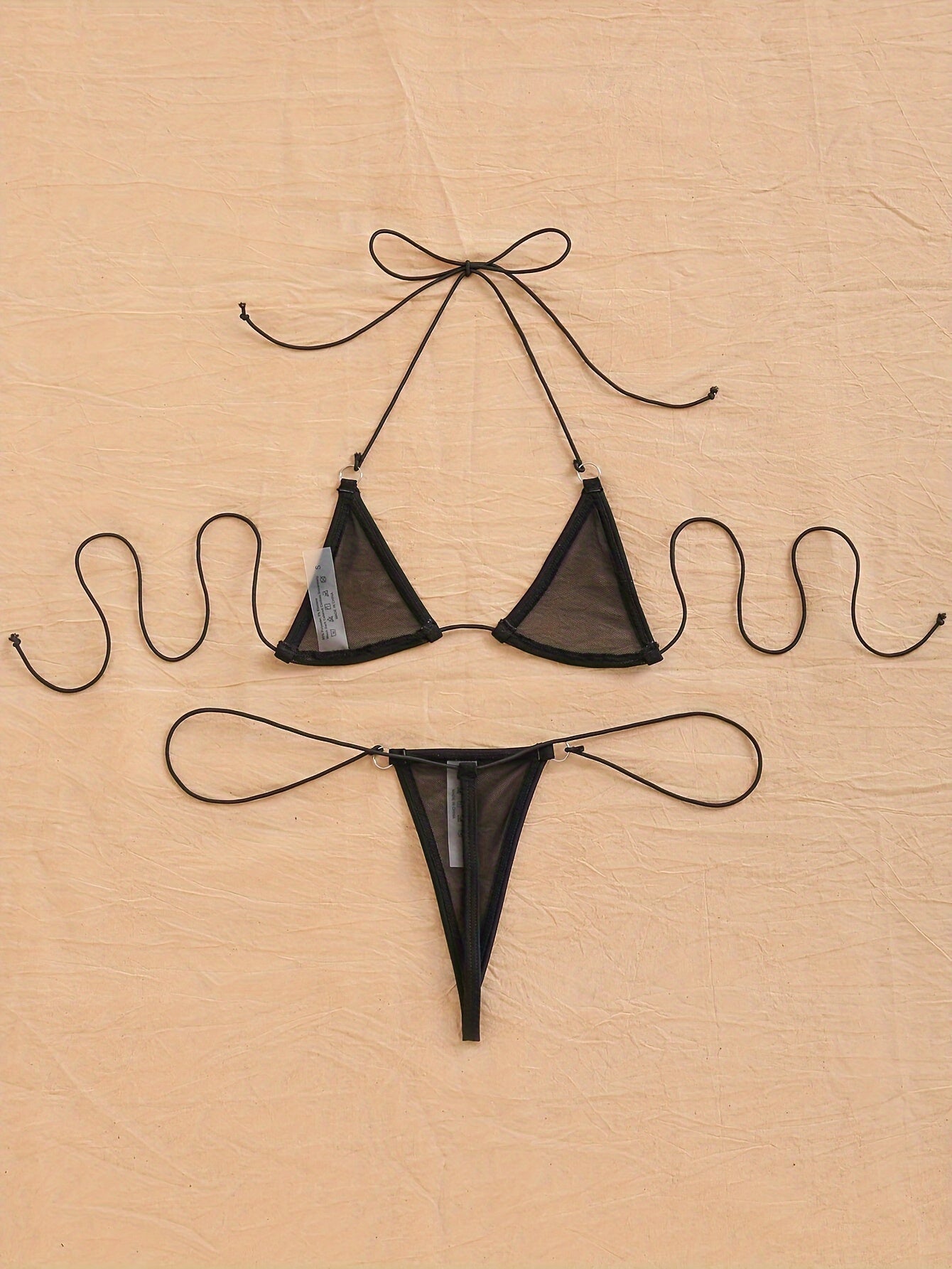 Jozibali halter bo'yinli ichki kiyim to'plami brassiyer va thongni o'z ichiga oladi.
