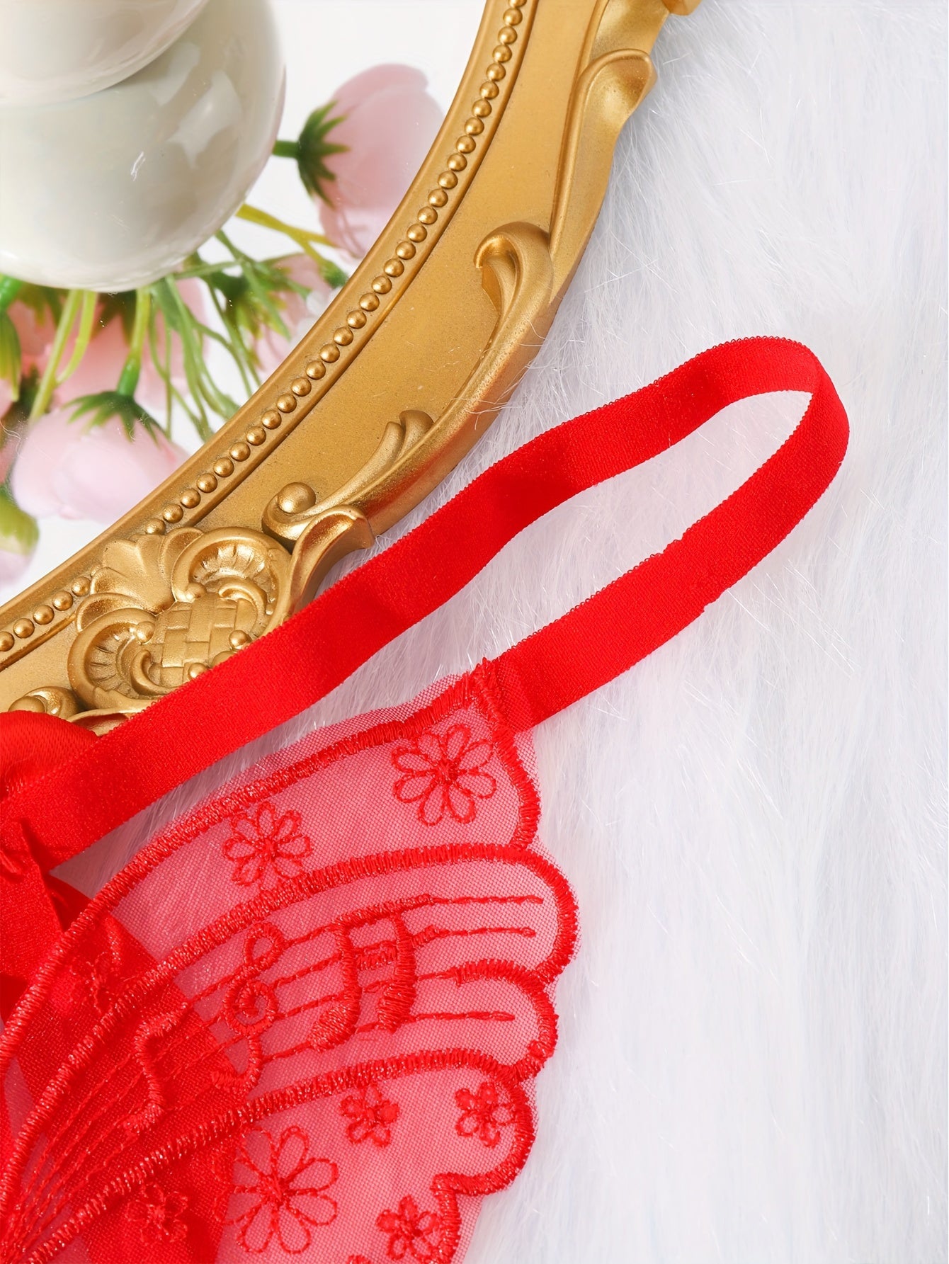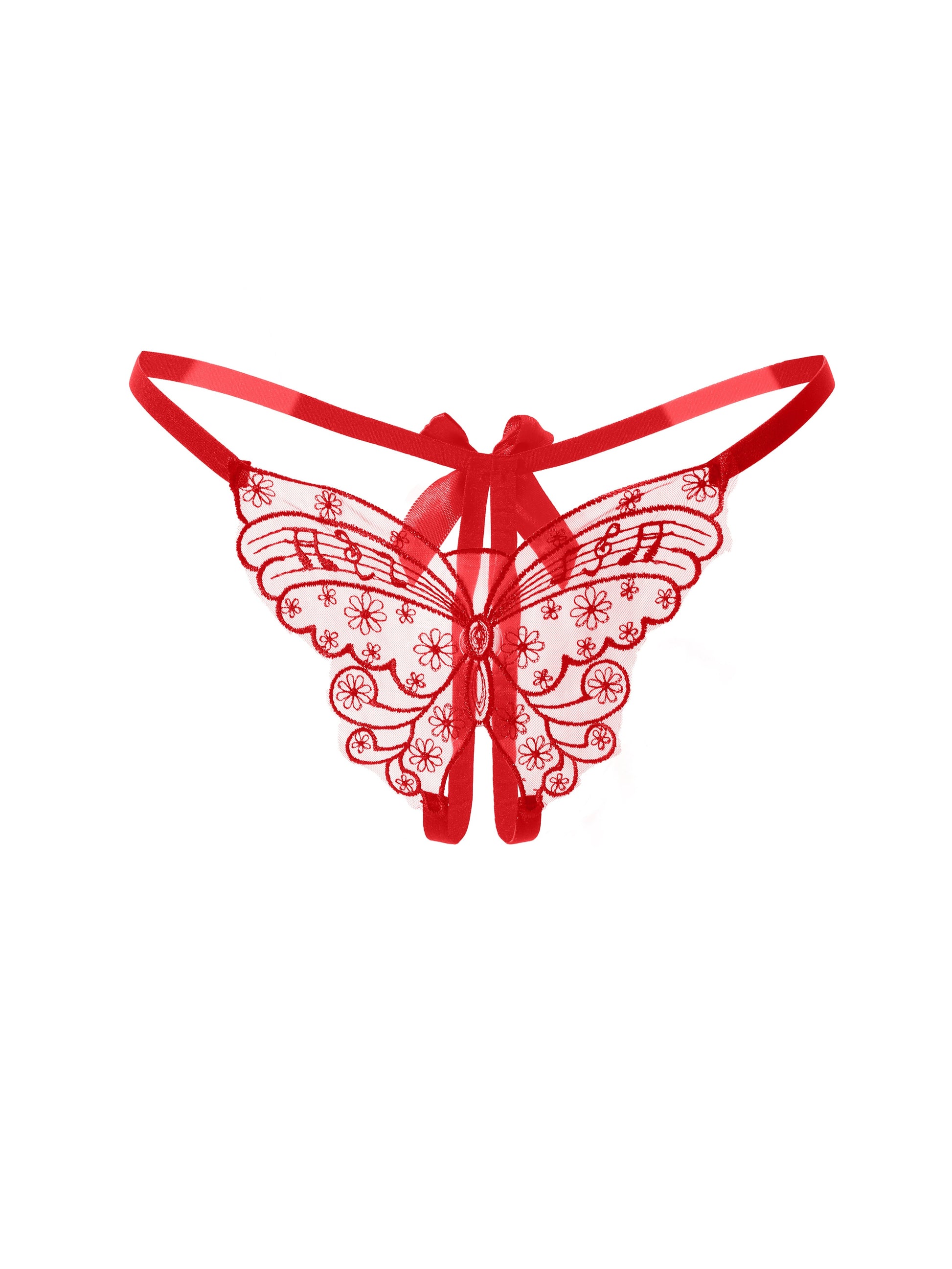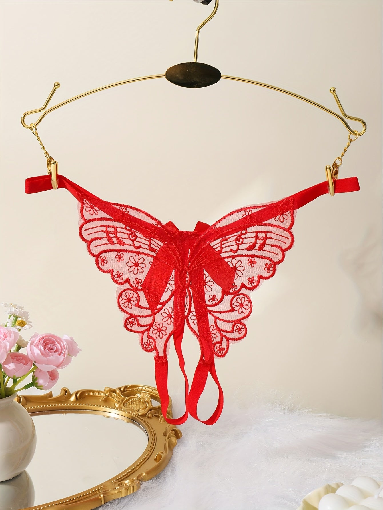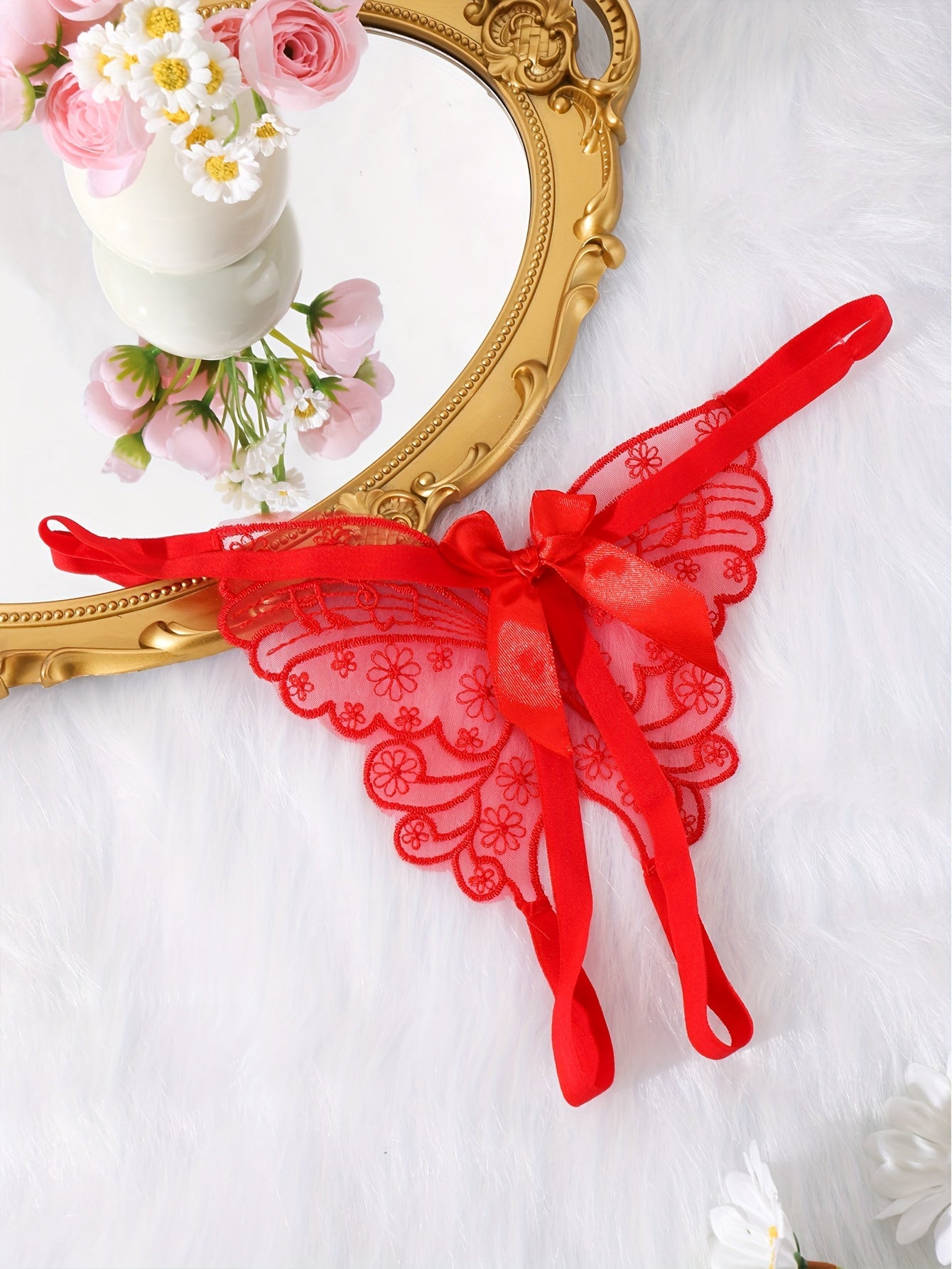 Ayollar uchun ichki kiyim, ochiq qovuq, past bel dizayni bilan sexy dantelli bog'li thong.