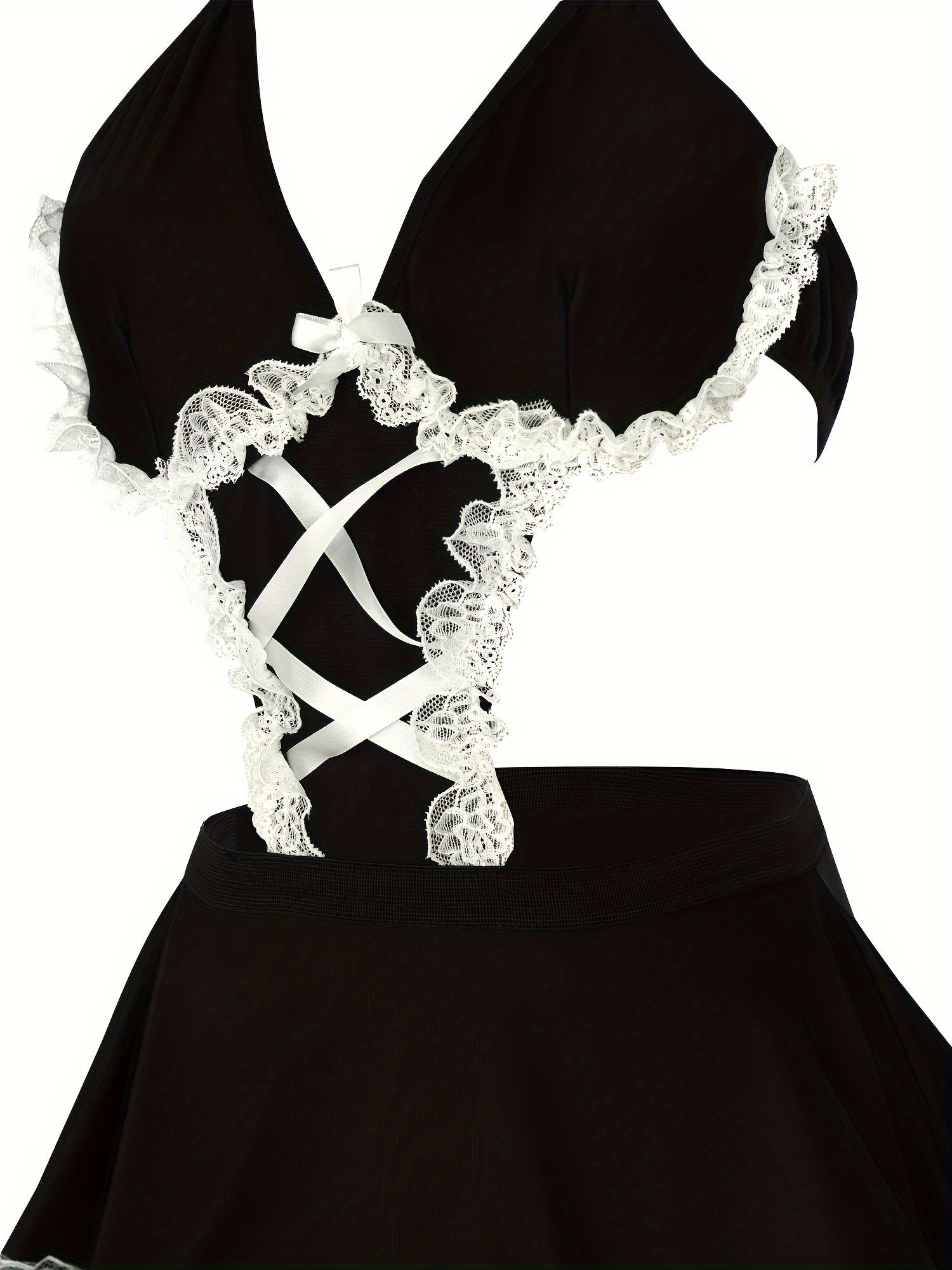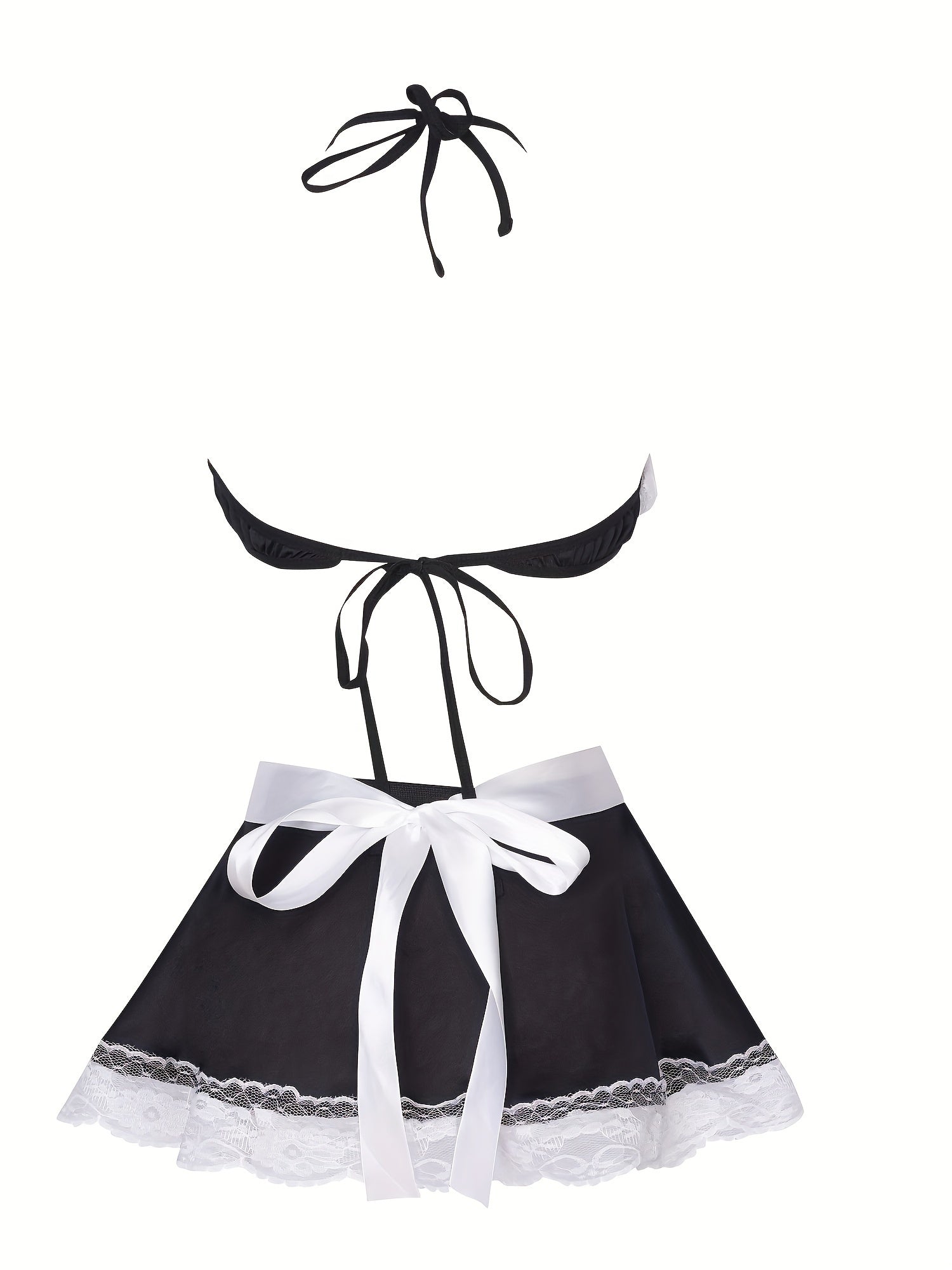 Halter marjon va dantel bezakli sexy xizmatkor kostyumi.