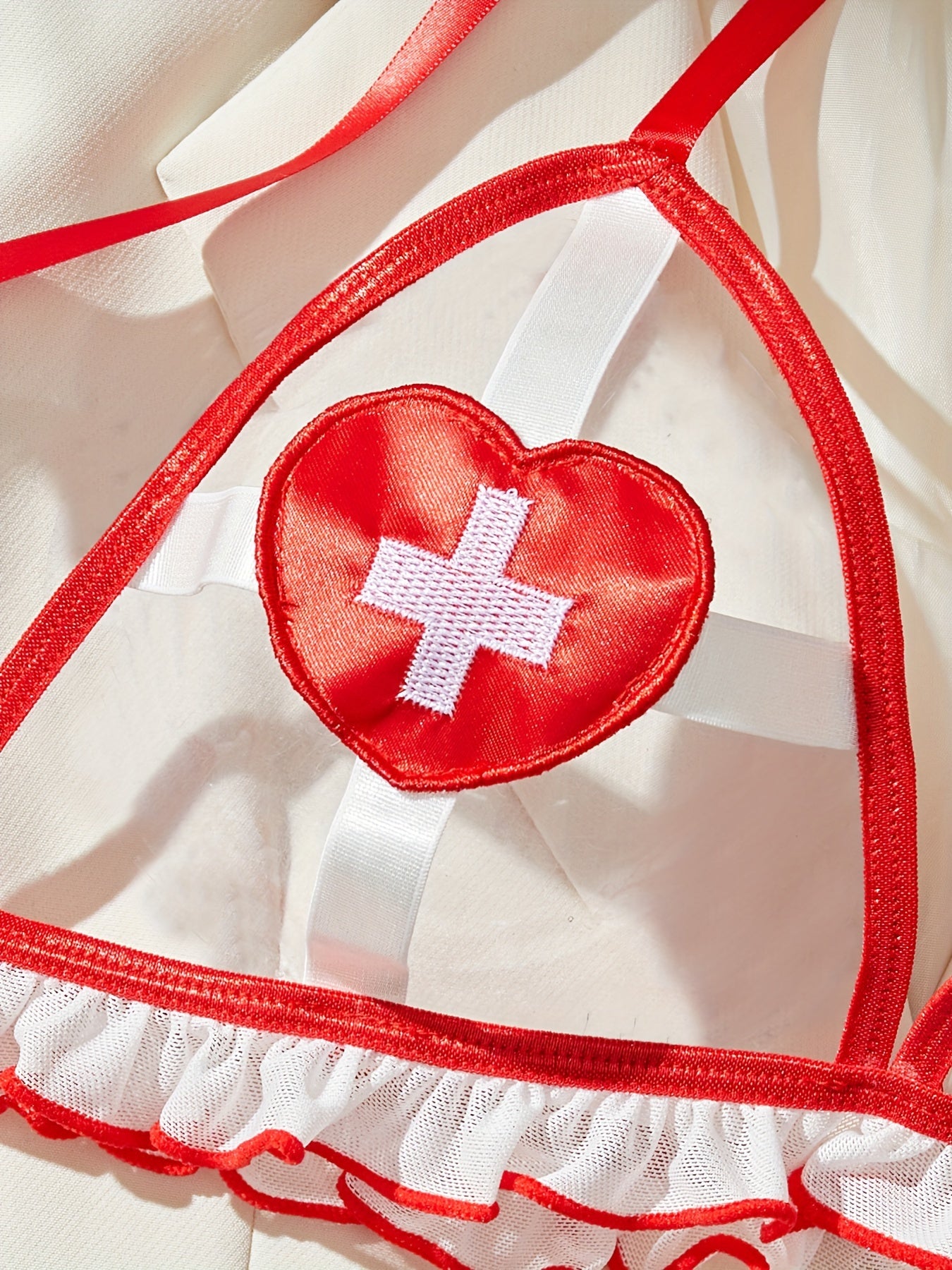 Jozibali hamshira kostyum to'plami bosh kiyimi, ichki kiyim va bo'sh dizayndagi shortlardan iborat bo'lib, 95% polyester va 5% elastan matodan tayyorlangan. O'rta darajadagi qo'llab-quvvatlash, 90gsm to'qilgan tuzilma, mustahkam.
