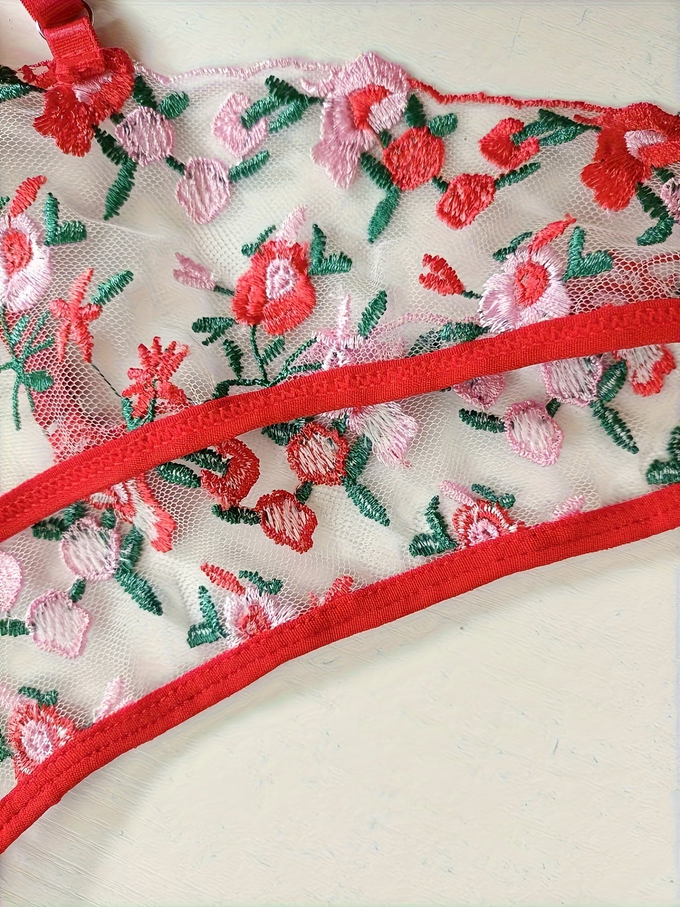 Tayyorlangan jaqard to'r bilan tikilgan, sexy ko'rinadigan uchburchak ichki kiyim