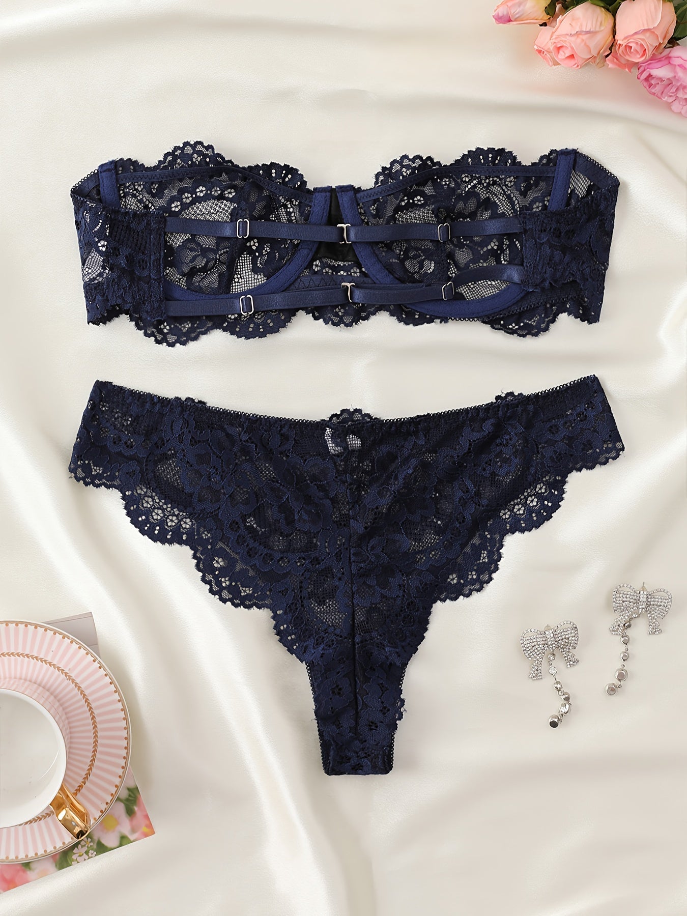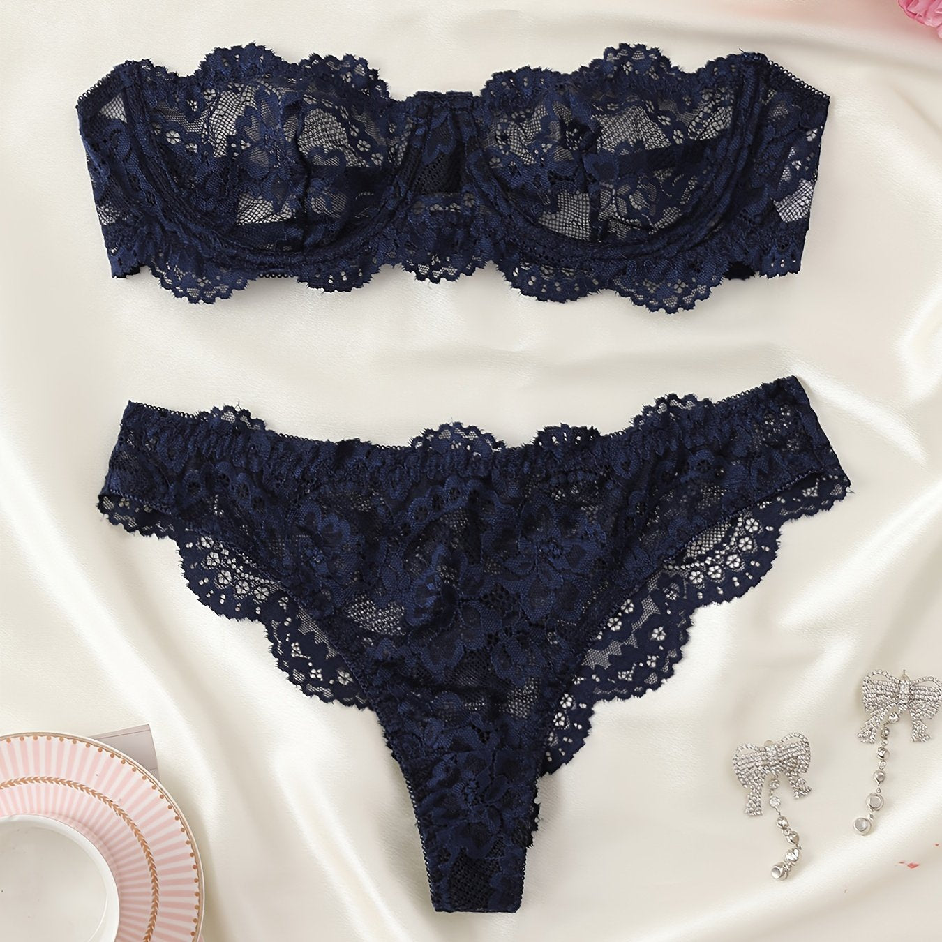 Jozibali uslubdagi shaffof dantel ichki kiyim to'plami