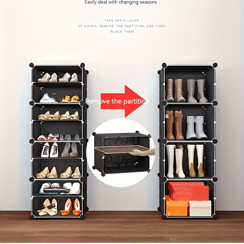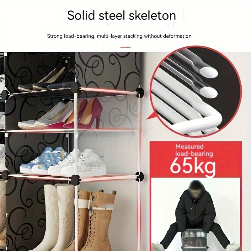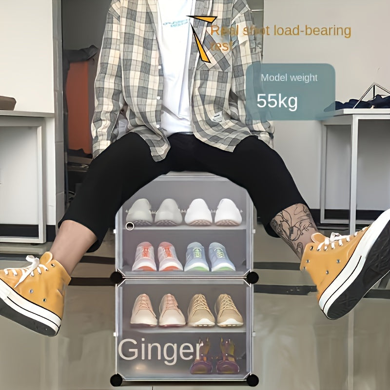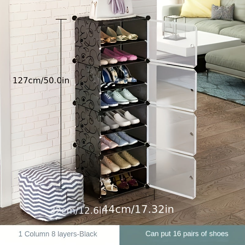 8-qavatli poyabzal saqlash tashkilotchisi, chang o'tkazmaydigan qopqoq bilan, yotoqxona yoki kirish joyi uchun shaffof dizayn