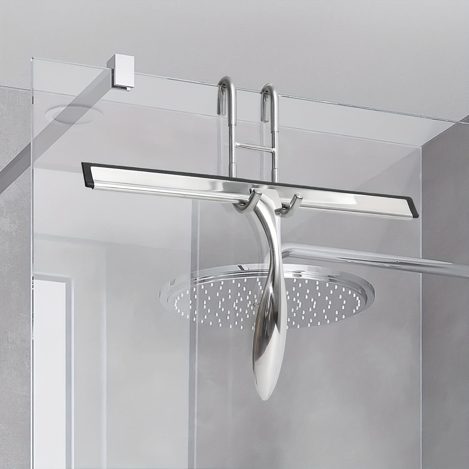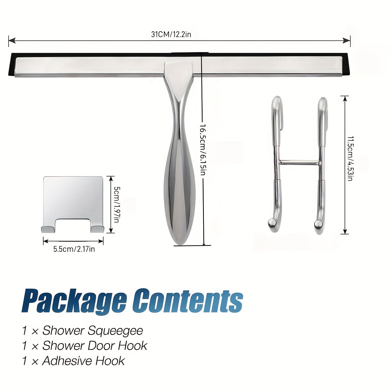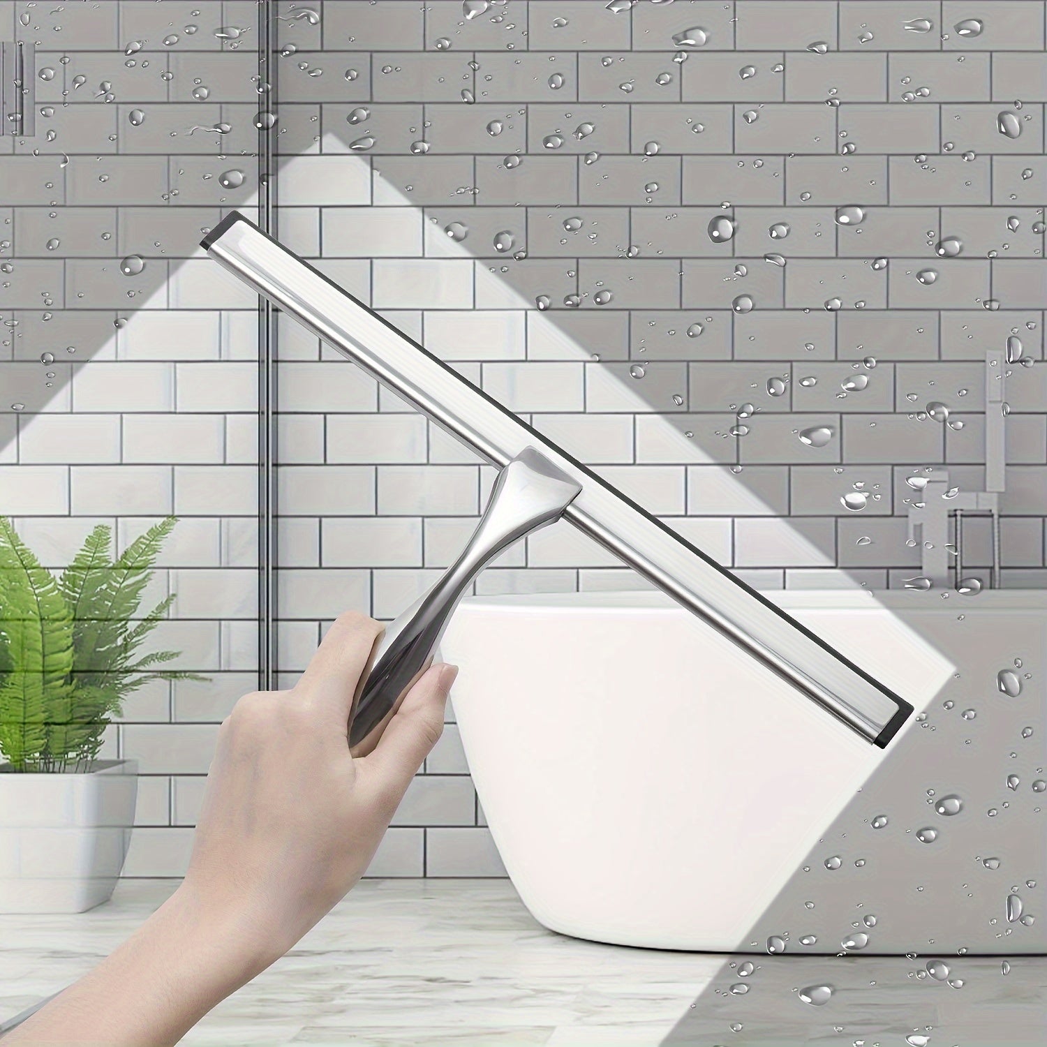 "Suvni tozalash uchun silikon tutqichi bilan shampun squeegee - hammom, shisha eshiklar va avtomobil oynalarini chiziksiz tozalash uchun - zanglamaydigan po'lat va yopishqoq ushlagich bilan"