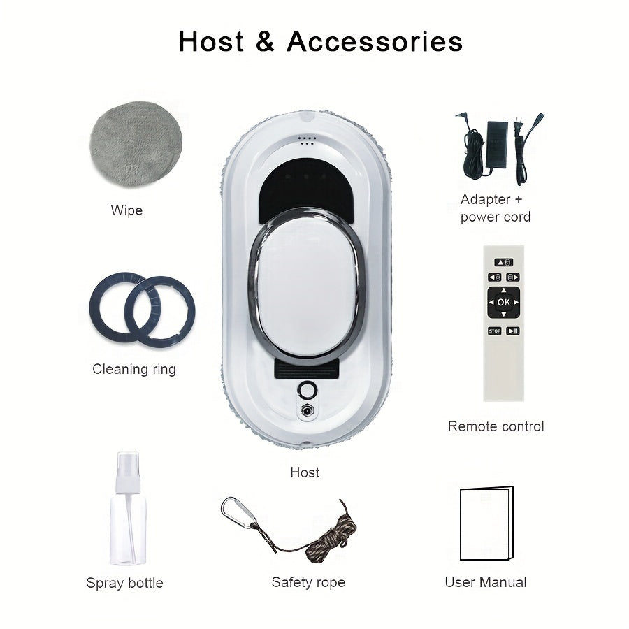Ovozsiz aqlli deraza tozalash roboti, masofadan boshqarish va qayta zaryadlanadigan litiy batareyasi bilan, virtual devor funksiyasi kiritilmagan.