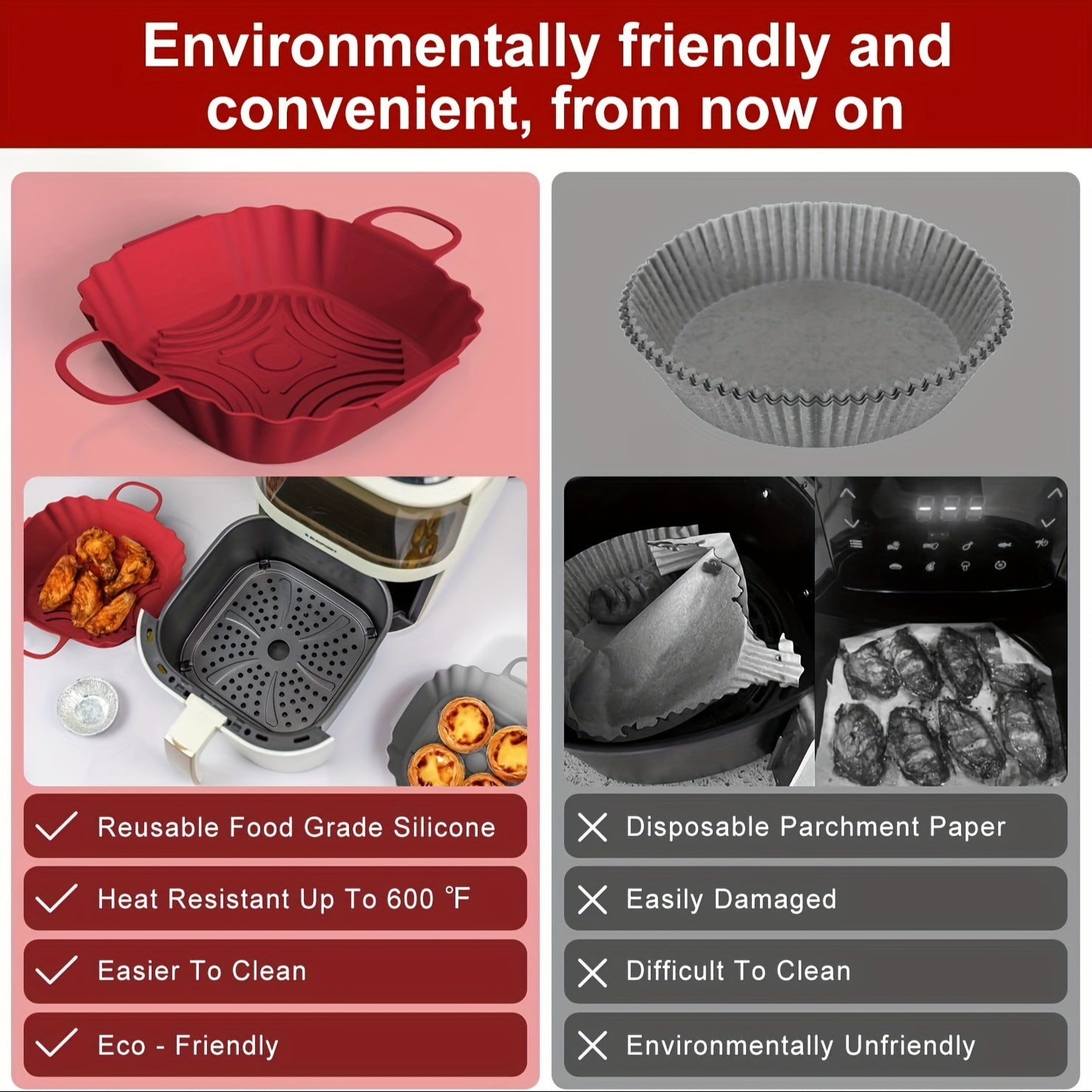 Silikon Havo Fryeri Qoplamasi - 1 Dona, Havo Fryeri uchun Oziq-ovqat Sifatli Pishirish Qog'ozi, Qayta ishlatiladigan va Tozalash Oson, Silika Gel Pad Pech Qog'ozi, Pech va Havo Fryeri uchun Oshxona Aksessuarlar - Pishirish Ta'minotlari va Aksessuarlar