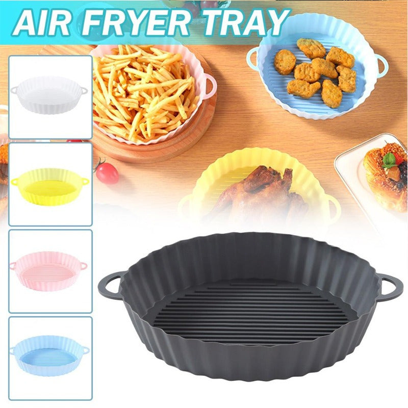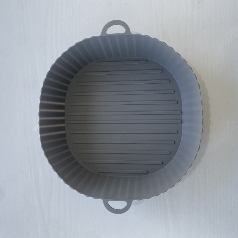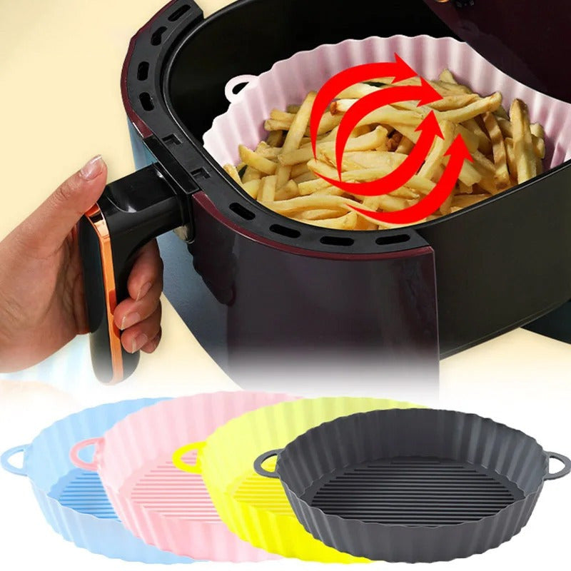 Havo fritöleri uchun silikon pishirish qog'ozi - yopishmaydigan, qayta ishlatiladigan, tutqichli ko'p maqsadli qoplama - 480°F gacha issiqlikka chidamli - plastik idish ushlagichni o'z ichiga oladi