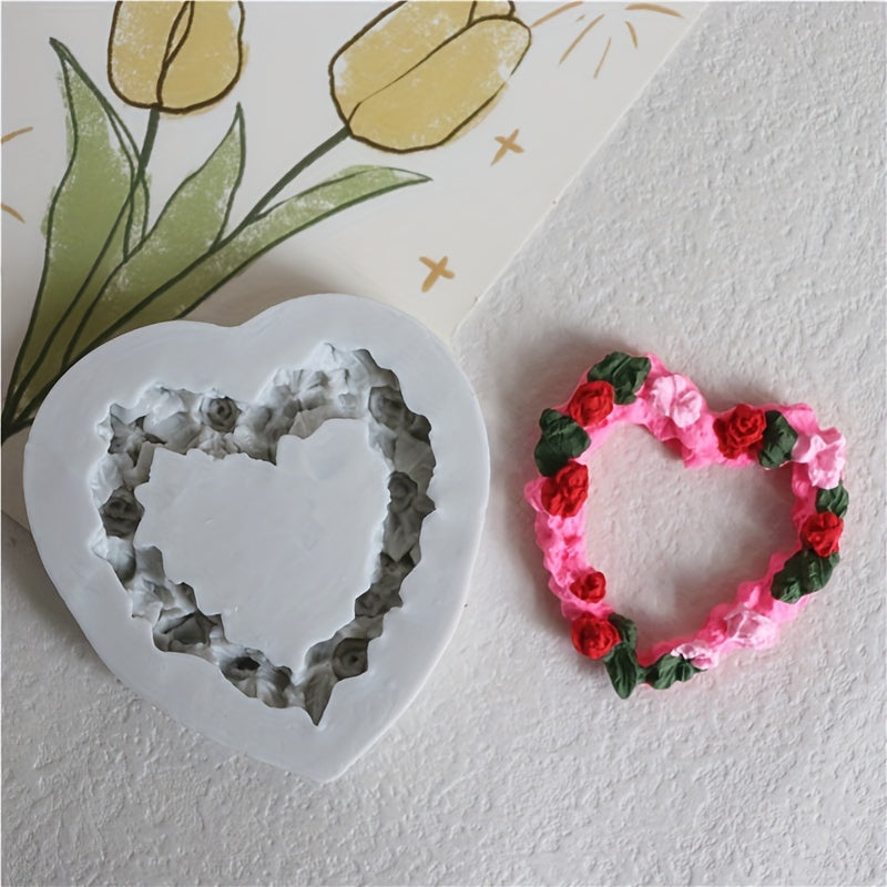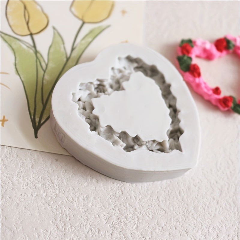 Kek bezash uchun silikon qolip - Nafis atirgul, yurak va barg dizayni bilan - Fondant, shakar san'ati va rezina hunarmandchilik uchun mukammal. Bardoshli silikon materialidan tayyorlangan, batafsil gullar naqshlari bilan. Kek bezash uchun ideal material.