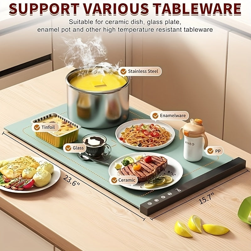 Vaqt bilan boshqariladigan, teginish bilan boshqariladigan silikon issiqlik saqlash matosi, Evropa standarti rozetkasi, DC rozetkasi, tashish sumkasi bilan. Qishki ovqatlanish uchun ideal.