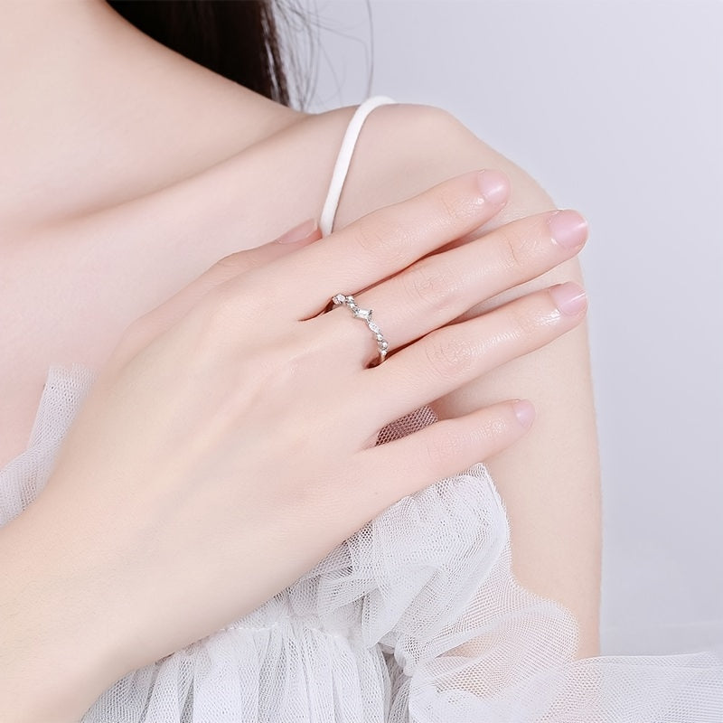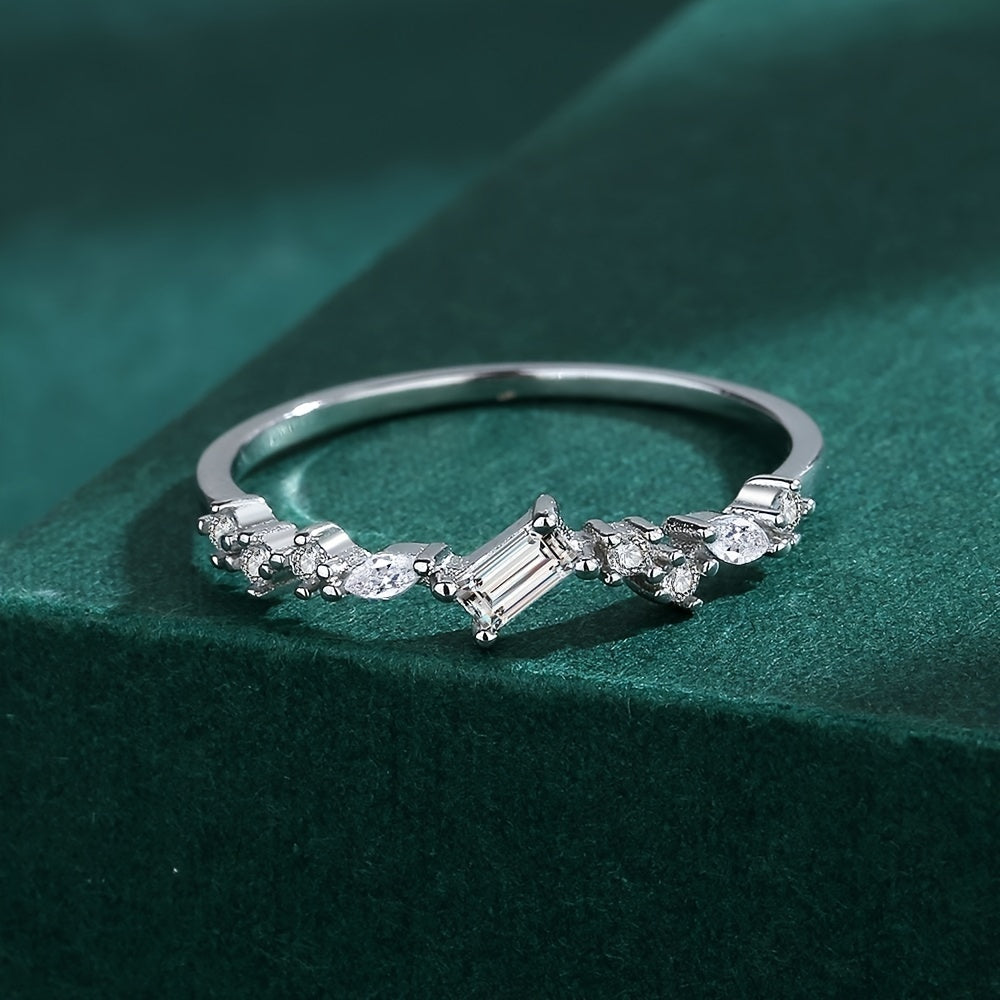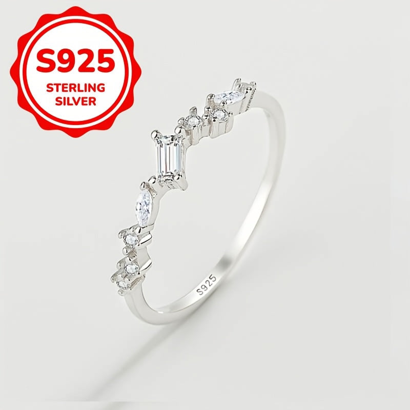 925-qiymatli kumush sintetik zirkoniy halqa, ayollar uchun tug'ilgan kun sovg'asi sifatida mukammal, notekis shaklda