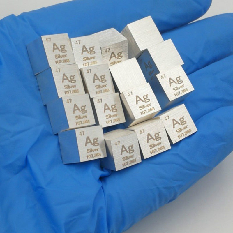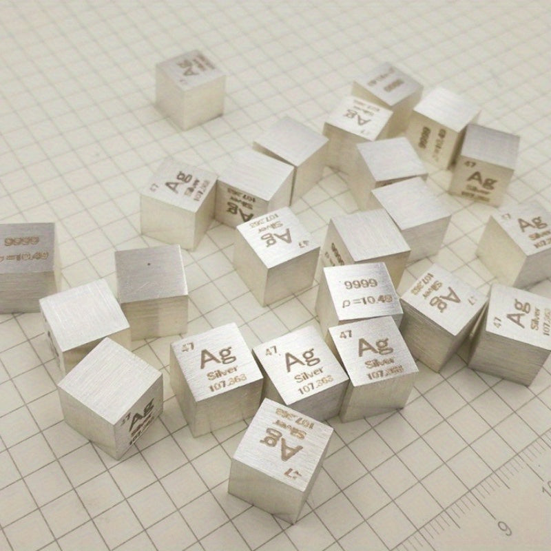 "Kumush zichlik kubi 10mm, 99.99% toza Ag - Kimyo o'qitish namunasi"