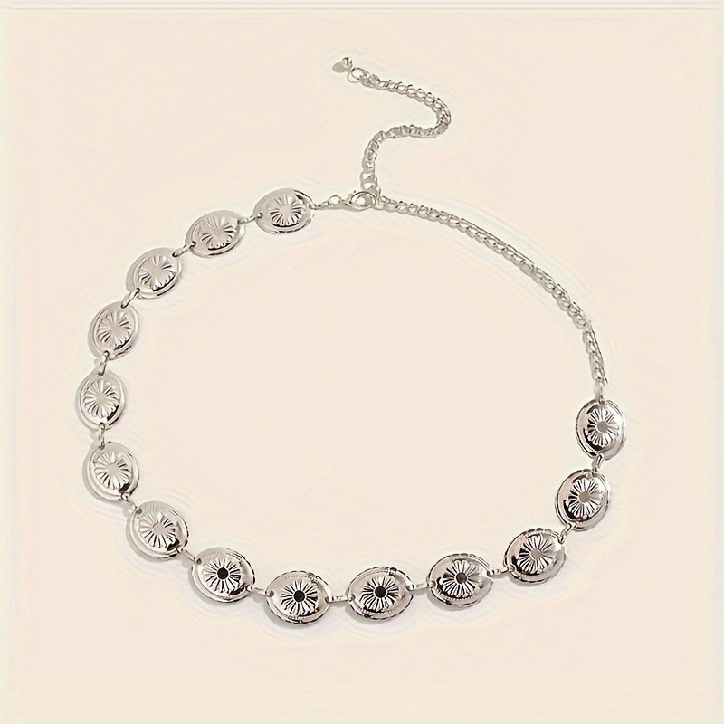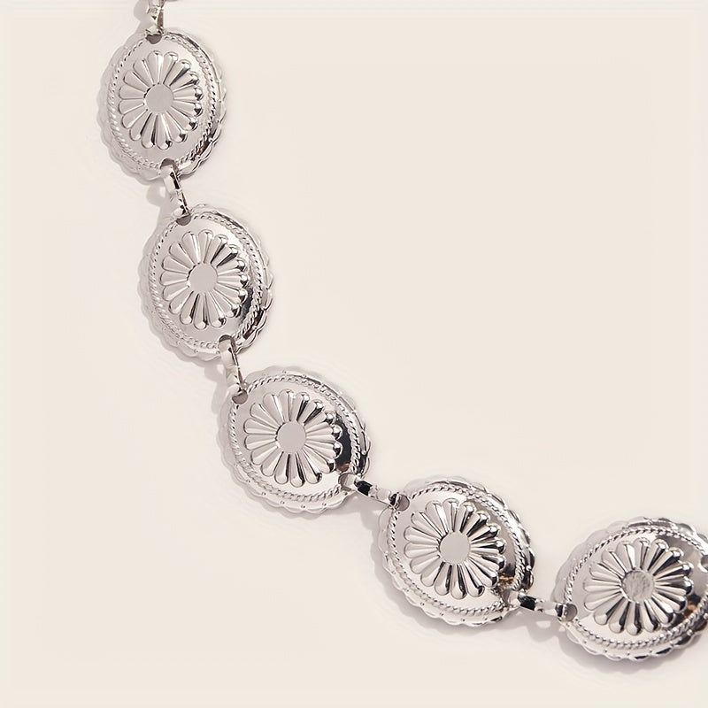 Ayollar uchun vintage oval oymali dizaynga ega kumush metall qorin zanjiri