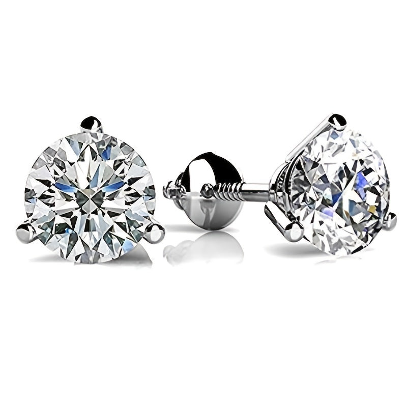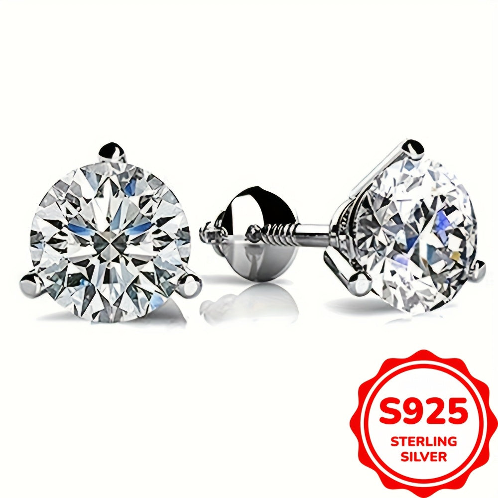 Ayollar va qizlar uchun porloq zirkon 3-tirnoqli dizaynga ega, 925 kumushdan yasalgan, kumush qoplamali vintli taqinchoqlar - Taqinchoq sevuvchilar uchun mukammal sovg'a