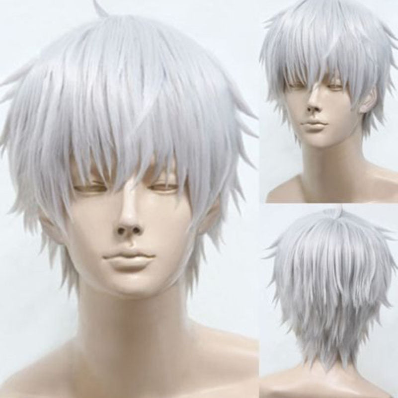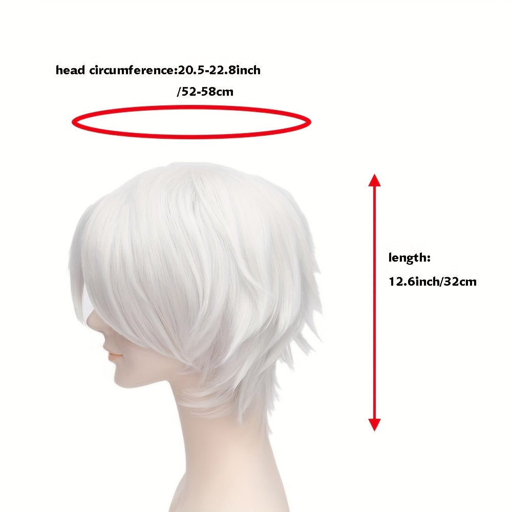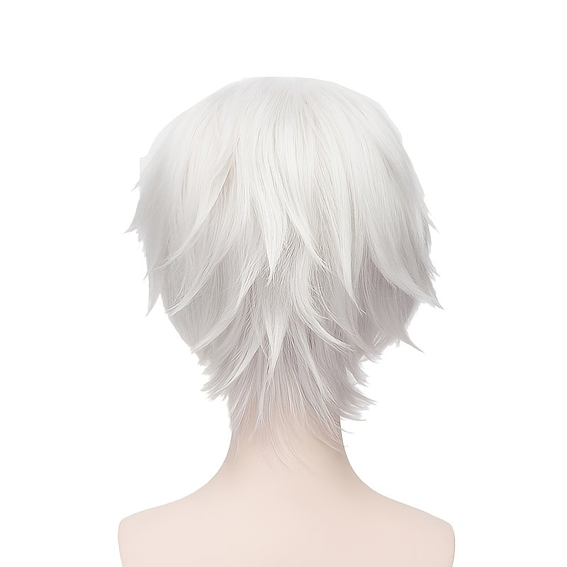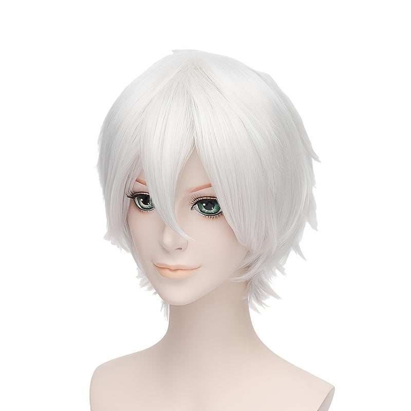 Kozplay uchun Harajuku uslubidagi qisqa peruka, kumush oq pufak soch