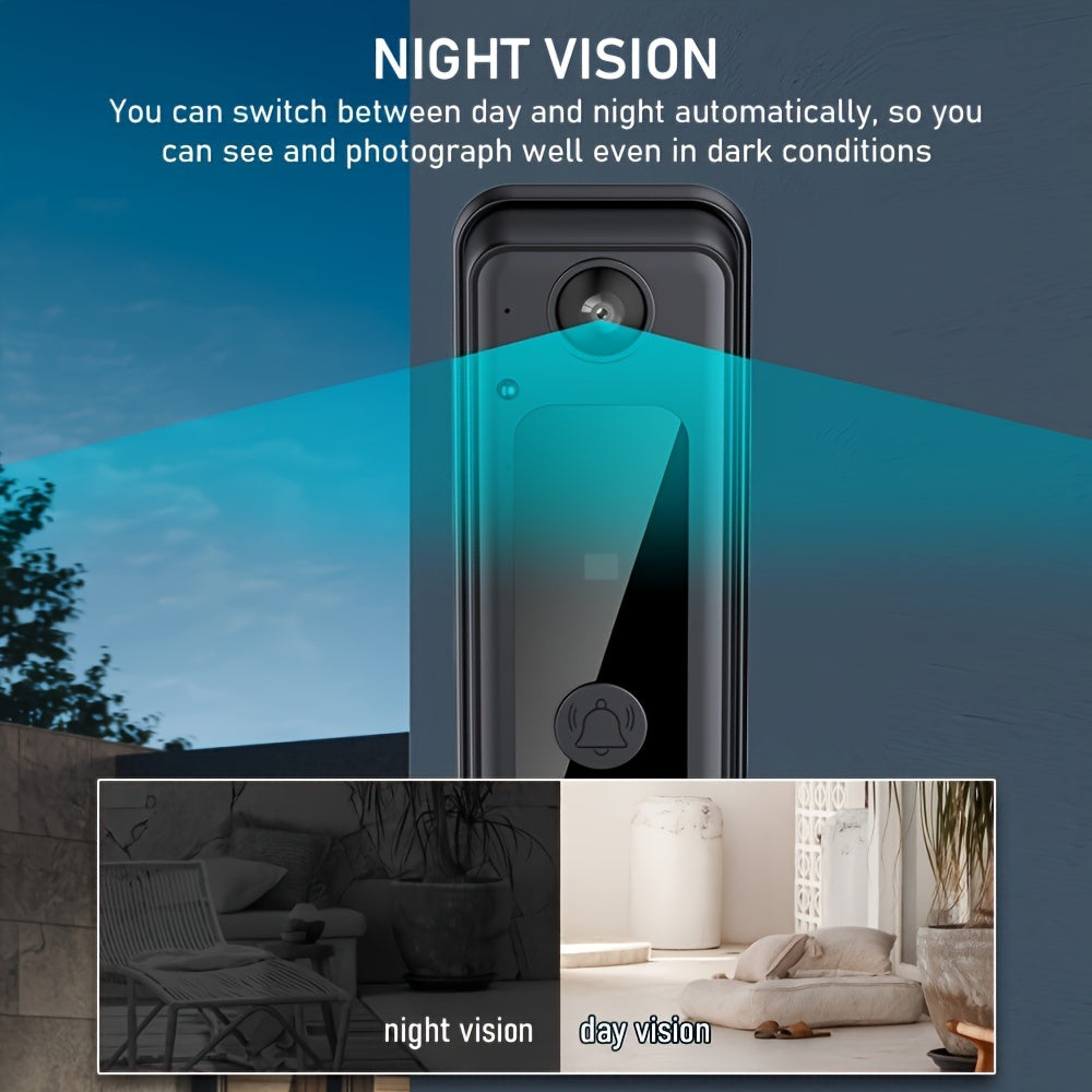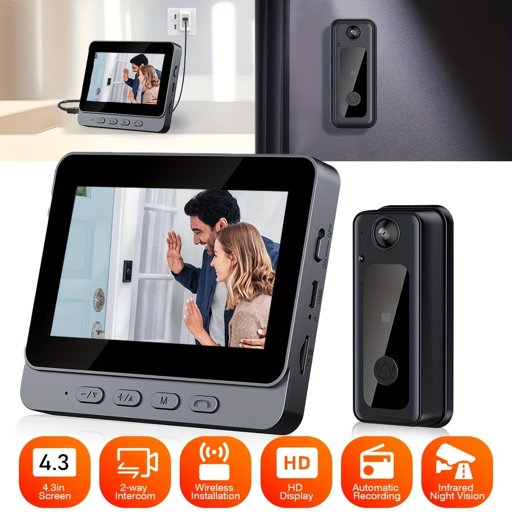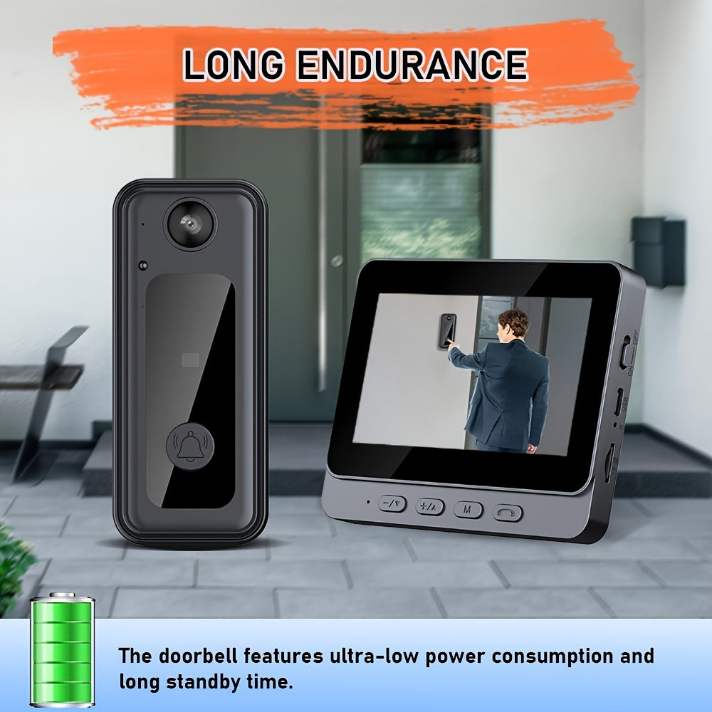Oddiy Aqlli Esik Qong'irog'i To'plami HD Kamera, Ichki Monitor, Tungi Ko'rish, Qayta Zaryadlanadigan Batareya - Qariyalar uchun Ideal.