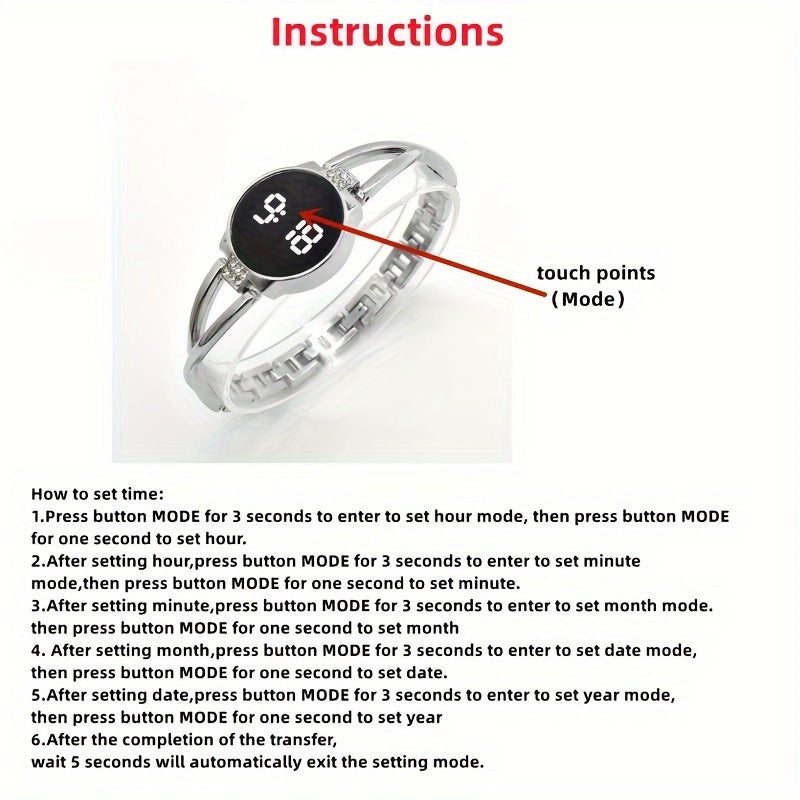 Ayollar uchun LED sensorli ekran po'lat bangle soat zamonaviy moda uslubiga mos