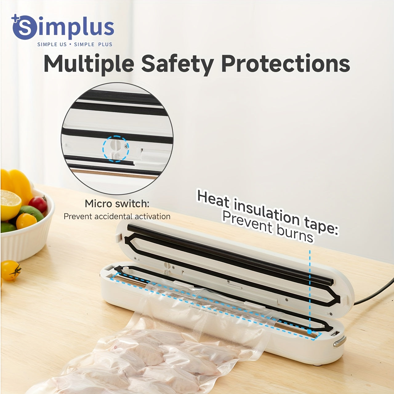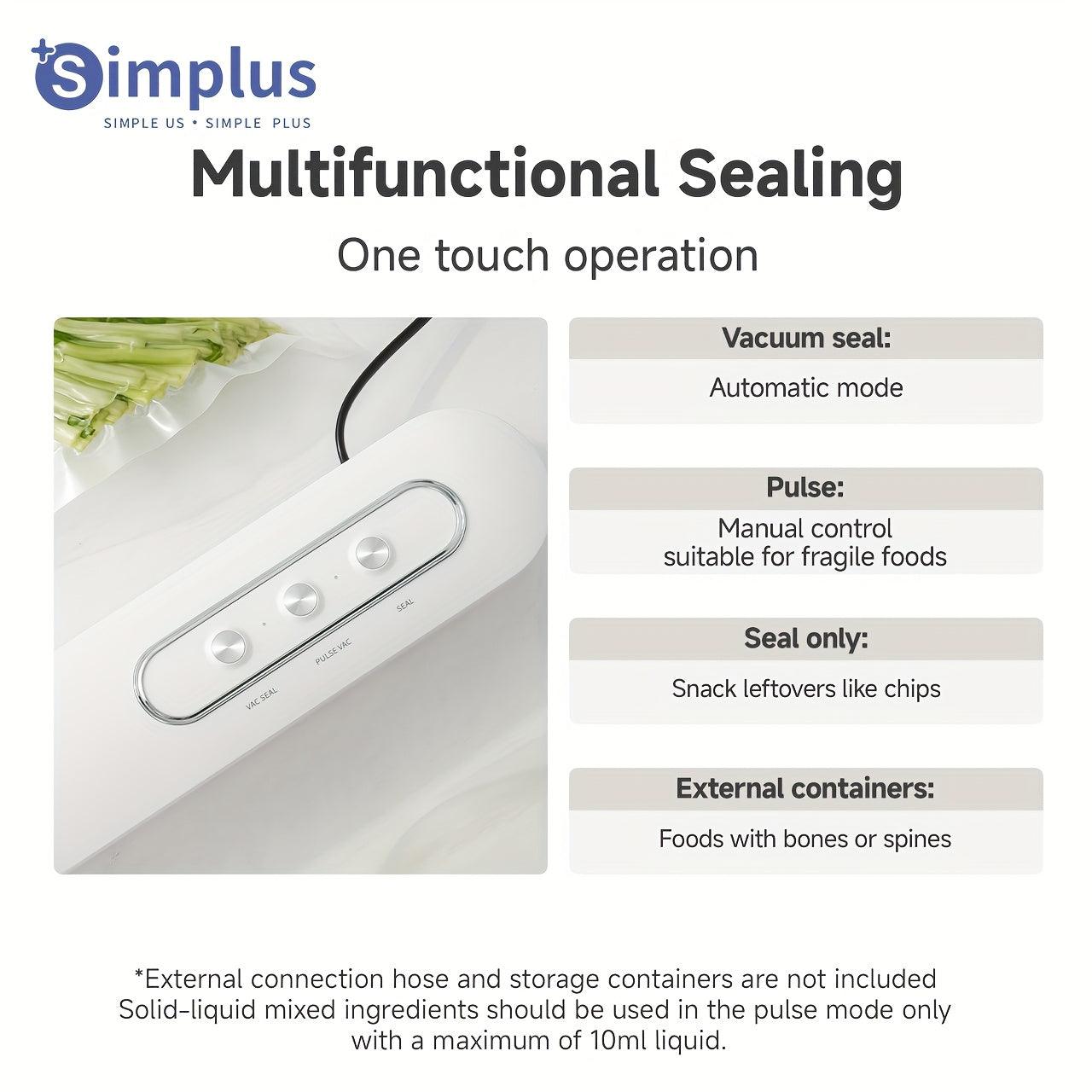 Simplus 1 dona Portativ Avtomatik Havo chiqaruvchi Mashina, 3 Ta Rejim bilan, 60kPa Kuchli Suvish, 6X Yangiqlikni Oshirish, 29.97cm Yopish Lentasi, Bir Bosing bilan Ishlash, Yoqimli Qoplamalar, Ikki tomonlama qulflash - Ideal