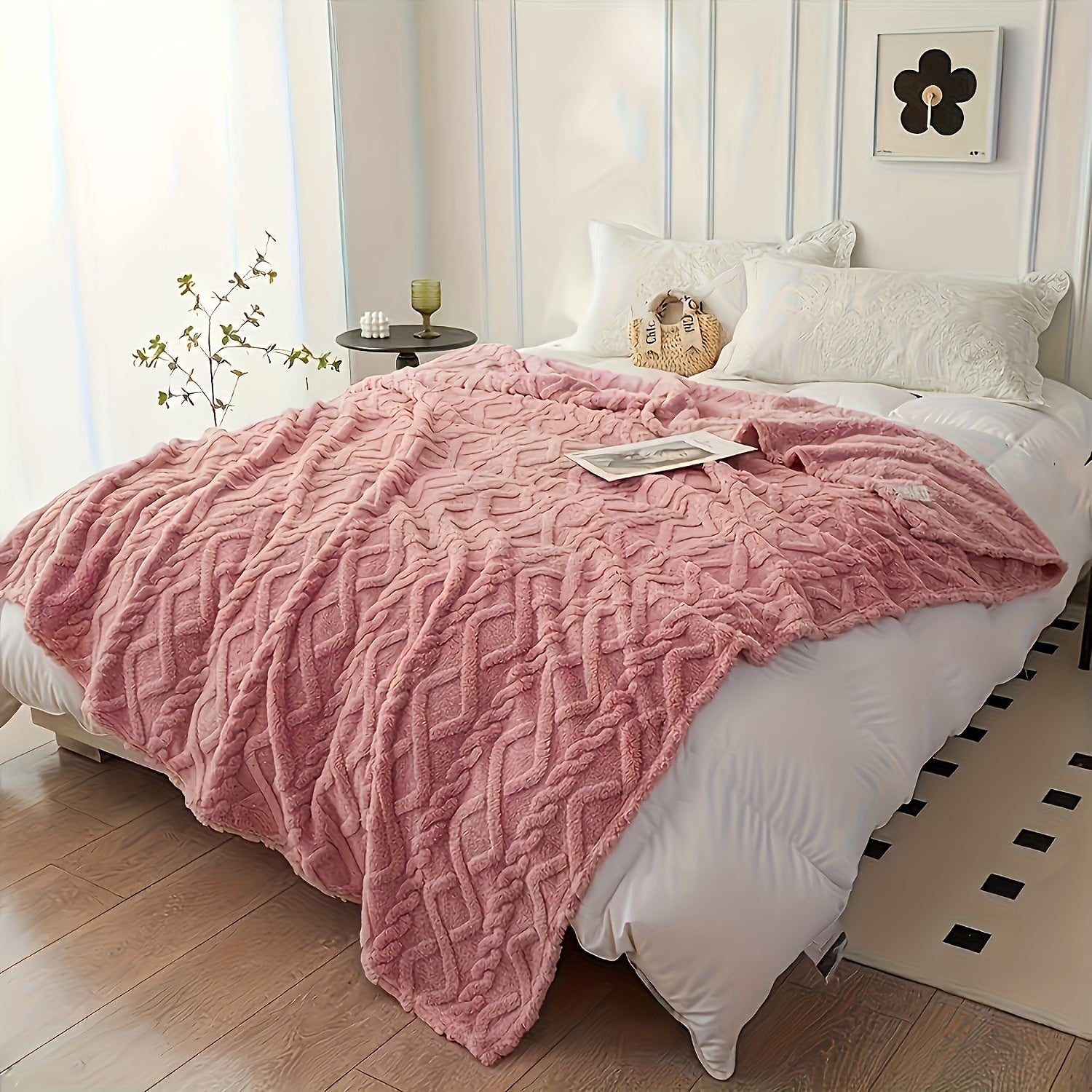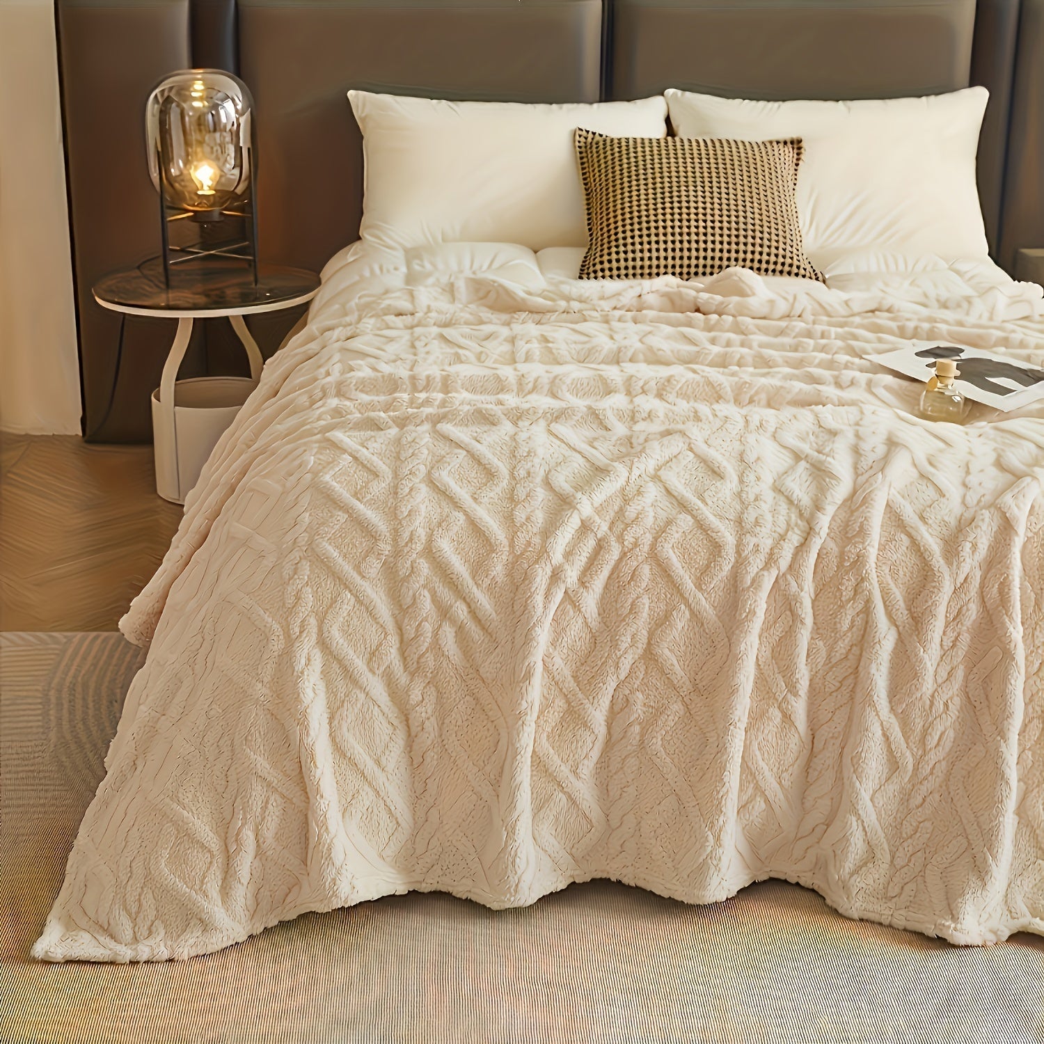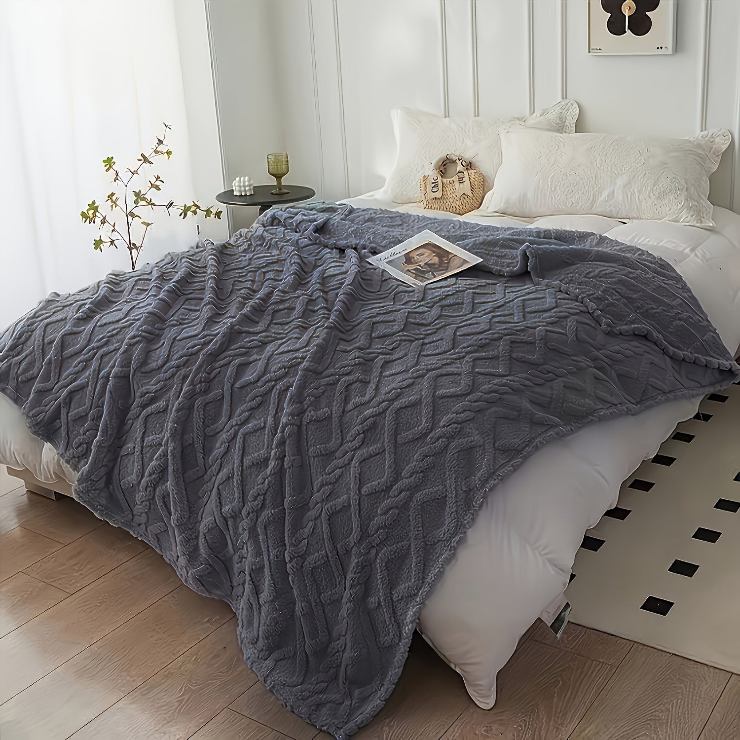 Yagona karavot uchun bir rangli jakard to'rli teri velvetsidan tayyorlangan ko'rpa. Ushbu ko'rpa qo'shimcha issiqlik va qulaylik uchun qalinlashtirilgan, bu esa uni havo konditsioneri uchun tashqi ko'rpa sifatida ishlatish uchun mukammal qiladi.