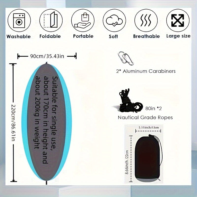 Yengil naylon parashyut matosidan tayyorlangan bitta kamping g'ildiragi, ochiq havoda sarguzashtlar va plyaj sayohatlari uchun mukammal, 199.58 KG gacha yuk ko'taradi.