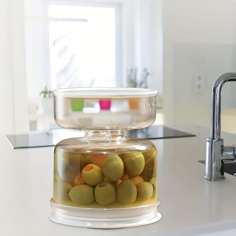 Taqdim etilgan idishlar uchun bitta qismli yopiladigan shisha bankalar, tuzlanganlar va zaytunlar uchun, filtr bilan